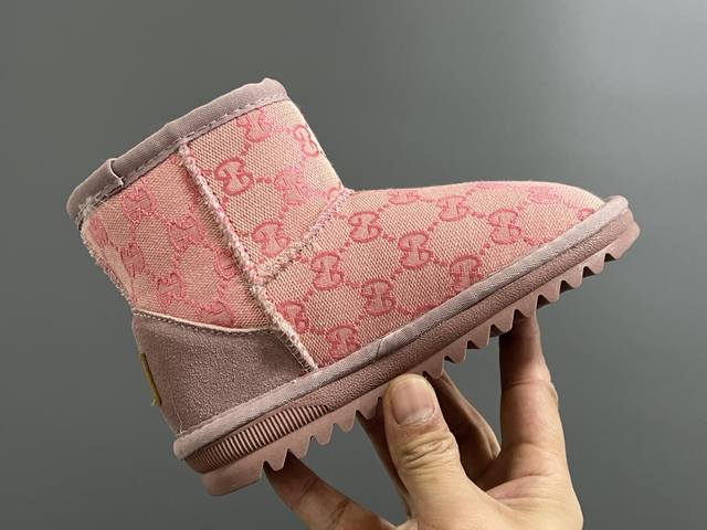 Ugg Gucci LV Collaboration Mid-Cut Children's Snow Boots Size: 25-37 Classic monogram color scheme Thick fleece lining for warmth and comfort Durable and non-slip outsole for a great feel Mid-cut style for windproof and warmth