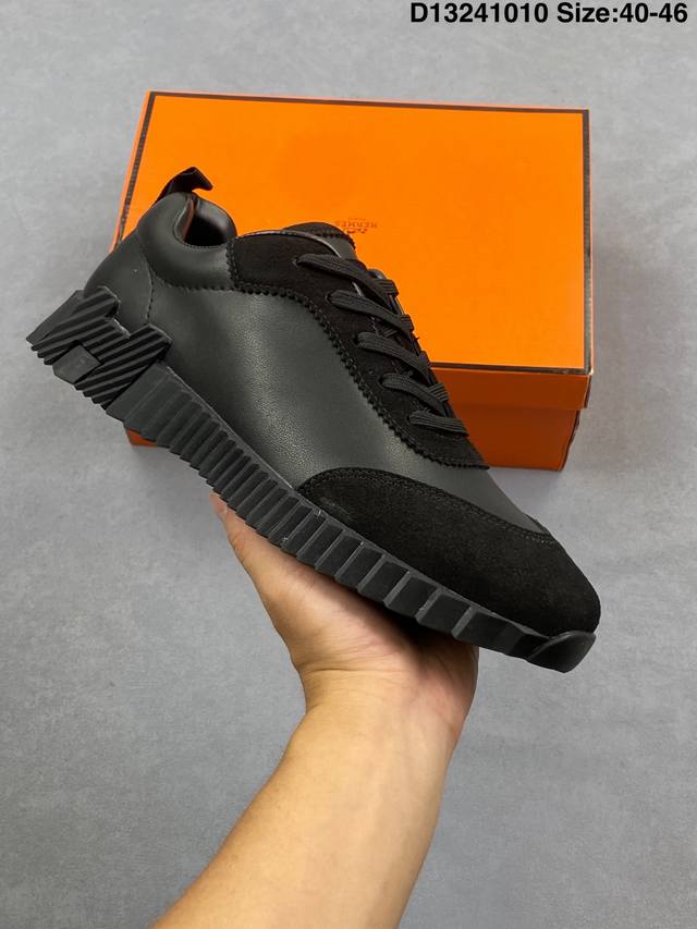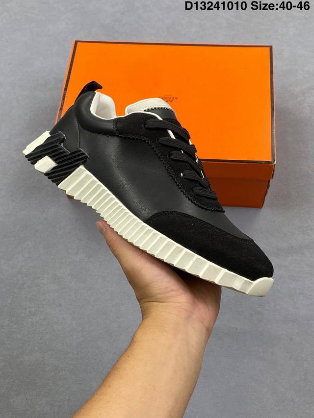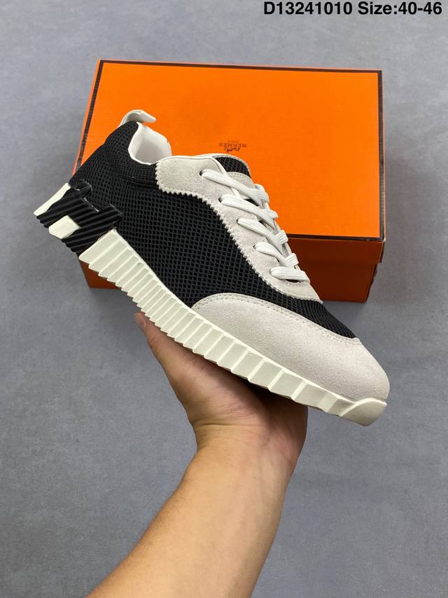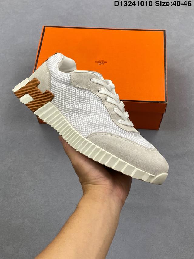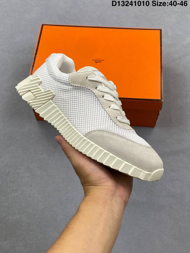 Hermes Bouuncing Calfskin Round Toe Lace-up Low-top Casual Shoes Men's White