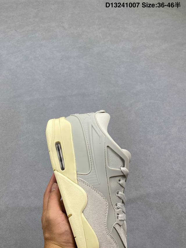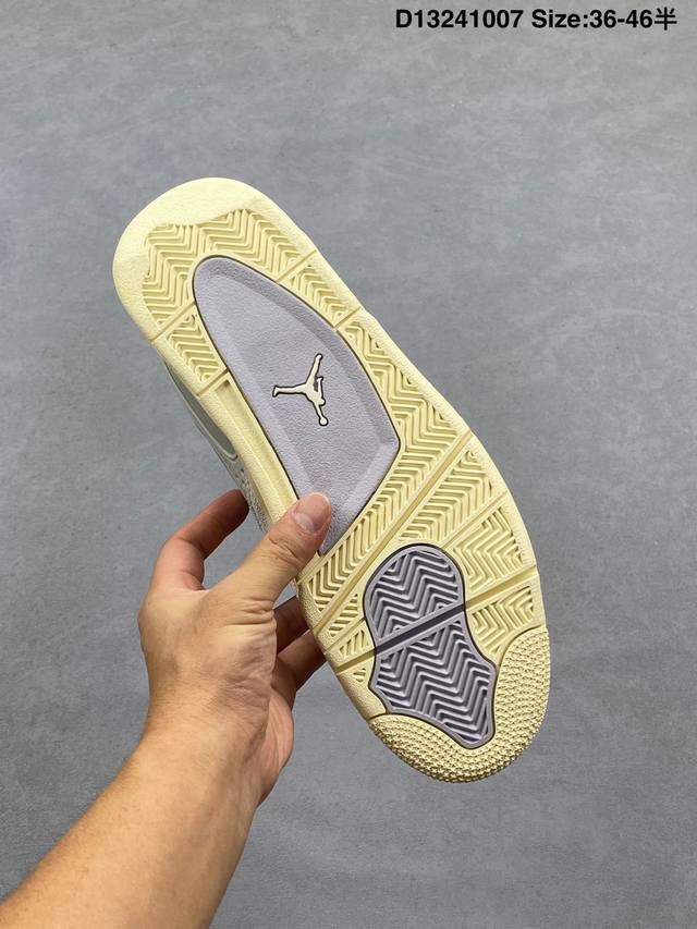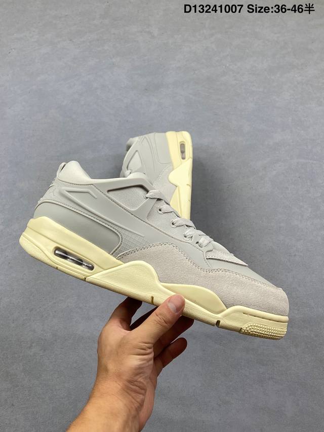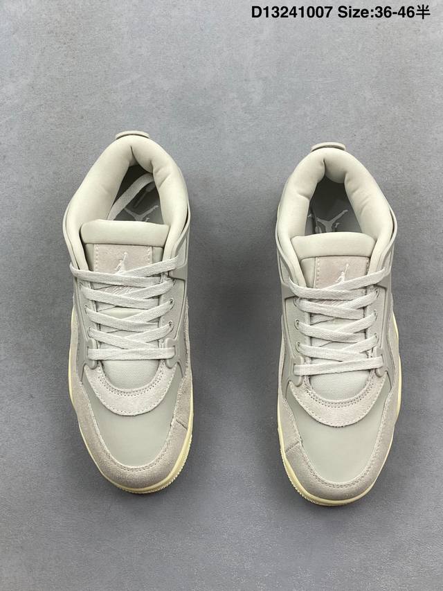 A cost-effective version of the Air Jordan 4 RM "Black Sail," a redesigned black and white Air Jordan 4. This redesigned black and white Jordan basketball shoe series is constructed entirely of leather and suede. The upper uses black leather as the main body, paired with a black suede frame at the toe. While retaining the classic Air Jordan 4 shape, it eliminates the original mesh and features black laces for a more cohesive look. A black tag at the top of the tongue features a red Jumpman logo and the word "Flight," highlighting the shoe's identity. The pull tabs on the collar and heel use white TPU material, adding more color depth to the shoe. The heel features a black Nike Swoosh logo and "Air" design. The midsole continues the use of a split, visible Air Sloec unit in the heel, and the overall design is completed with a beige midsole and matching rubber outsole. Men's