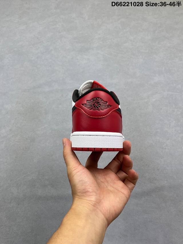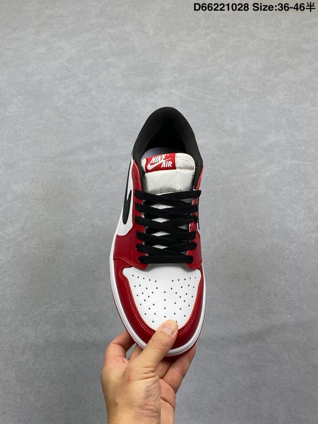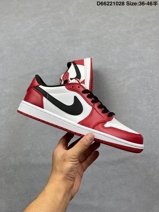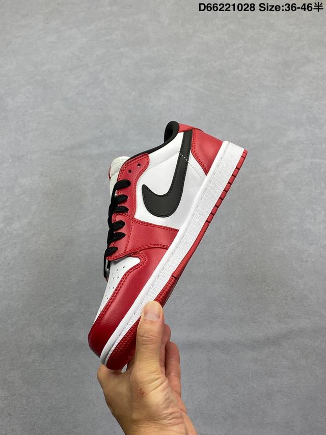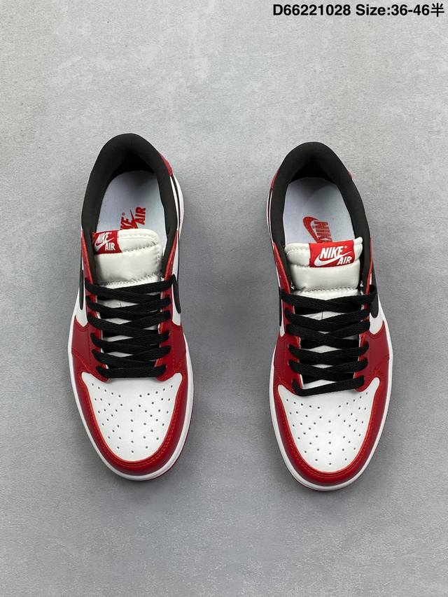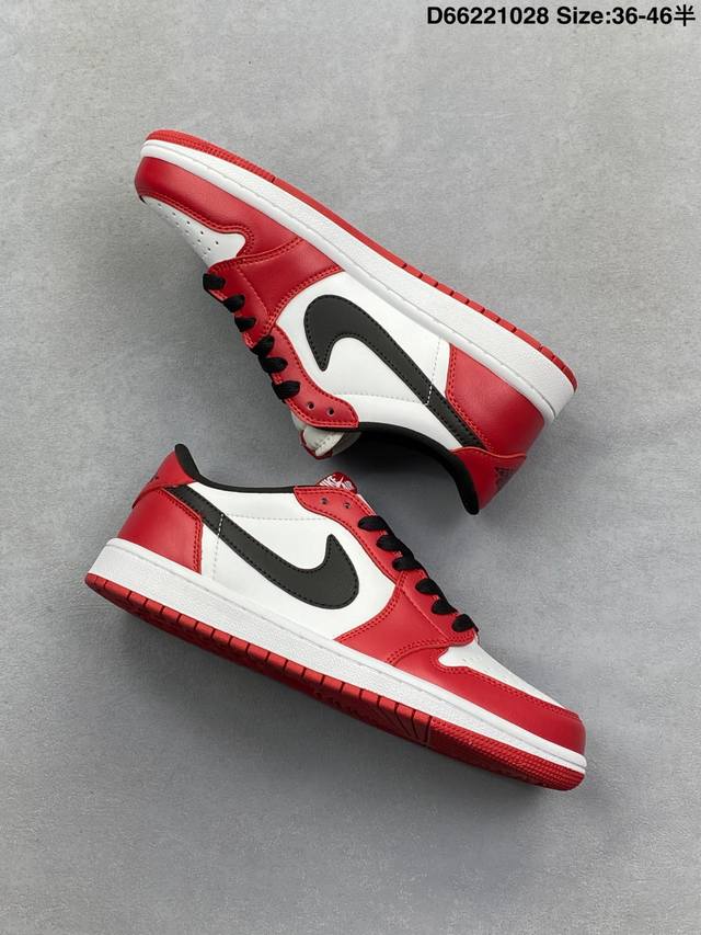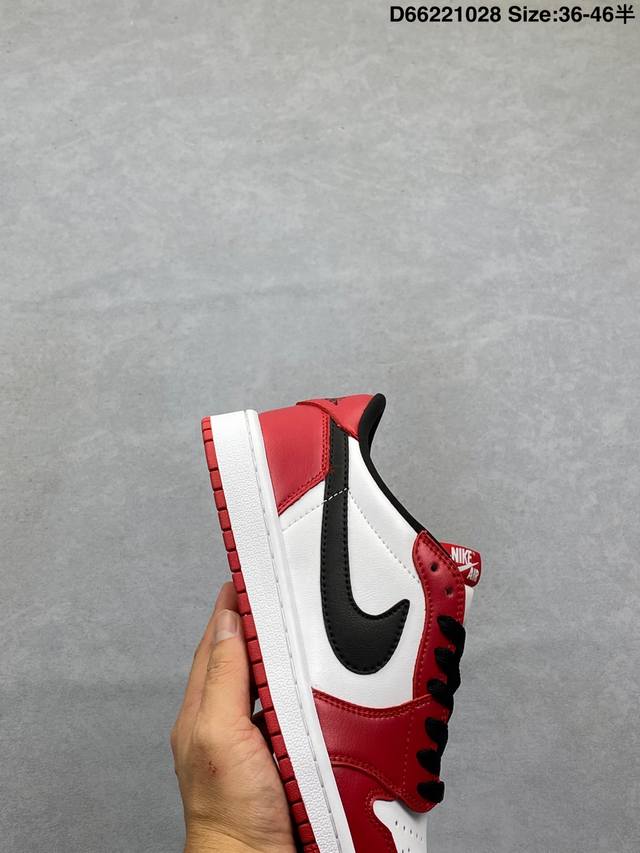 Air Jordan 1 Low Og Black Muslin Varsity Red Low-top Retro Chicago AJ1 Jordan 1 Low-top Retro Red, White, and Black Jordan Basketball Shoes. The classic Chicago white, black, and red colorway of the Chicago Bulls has arrived. Not only does it recreate the iconic Chicago Bulls colorway, but the materials used are also meticulously replicated to deliver an authentic Og feel. The shoe features classic OG details, showcasing the familiar Bulls color scheme. The upper is constructed entirely of white leather with red leather overlays, creating a striking and vibrant look. The black Swoosh logos and details on the sides are perfectly placed, exuding classic style. The tongue features a red embroidered label with a white Nike Swoosh logo, while the Wings logo on the heel is embossed in black. Finally, a white midsole and a red rubber X outsole complete the overall design.