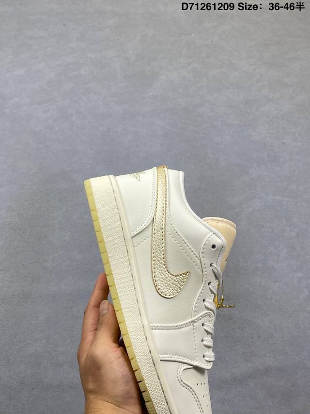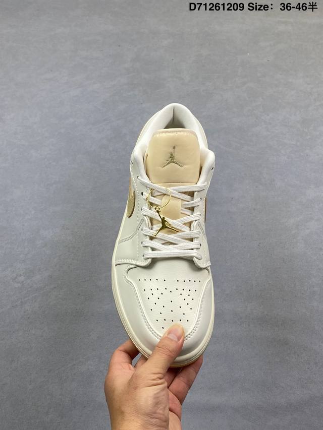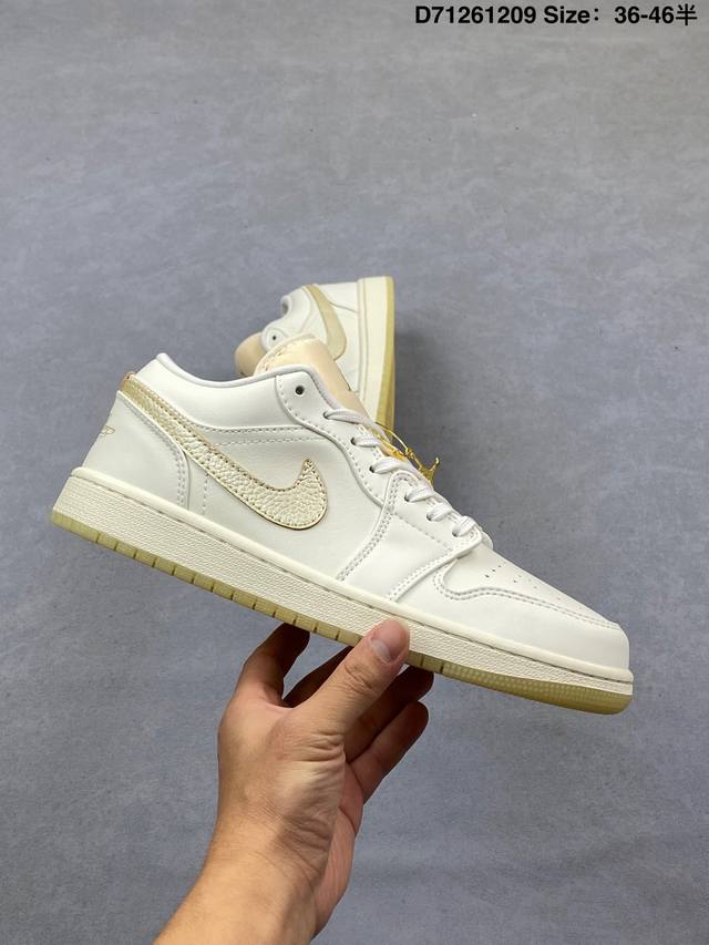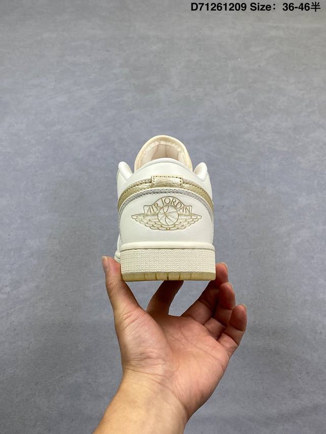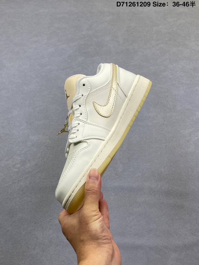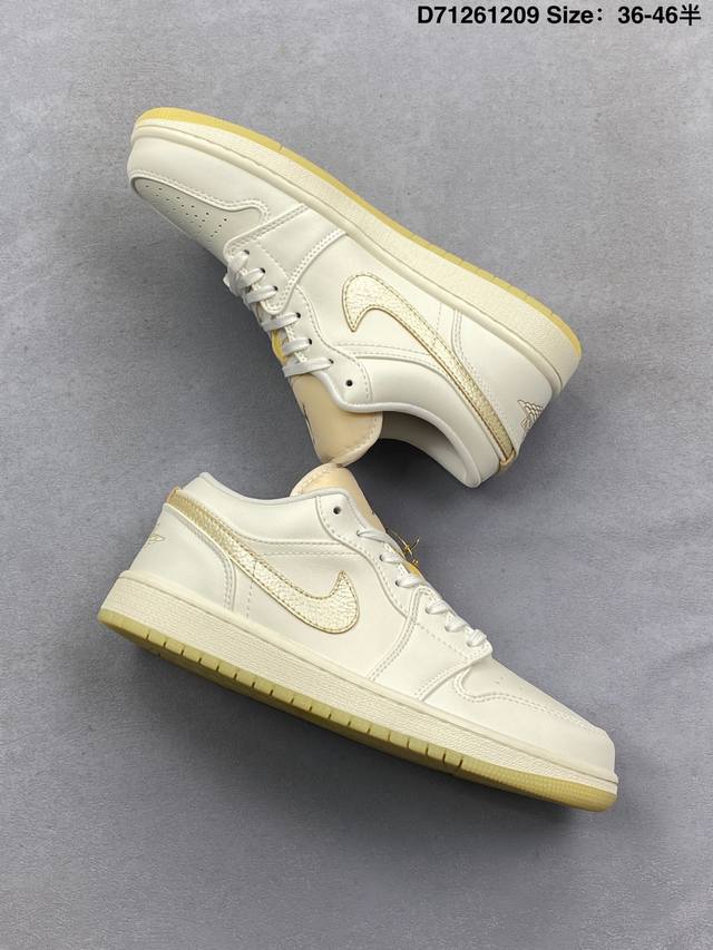 Air Jordan 1 Low Se Coconut Milk Black Low-top Beige and Black Woven AJ1 Jordan 1 Low-top Beige and Black Jordan Basketball Shoes. The overall color scheme is beige and black, with a black lizard skin textured frame overlay, giving it a unique design and sense of layering. The Swoosh logos on both sides of the shoe are also embellished with black lizard skin texture, the tongue features a bronze three-dimensional Jumpman logo, the collar is decorated with beige woven fabric, and the Wings logo on the heel and the lining are accented with light blue. Finally, a beige midsole and a black rubber outsole complete the overall design. Product Code: Hv5157 100 Code: D71261209 Size: 36
