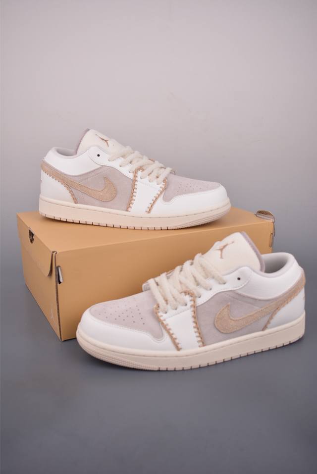 Air Jordan 1 Low with Milk Tea Stitching. AJ1 Low-Top Casual Sneakers, synchronized with official colorway. Exclusive top-grain leather construction, original shoe and material specifications. Original leather, original material, perforated toe box, full-glued insole, four-stitched upper, original woven label, high-elastic sponge filling on the tongue. Official style code: Hv4268 1203333. Sizes: 36 36.5 37.5 38 38.5 39 40 40.5 41 42 42.5 43 44 45 46.