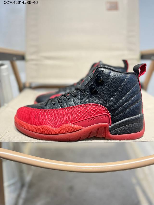 / Air Jordan 12 Gs AJ12 Jordan 12 Black/Red Basketball Shoes Gt8013 Qz7012614#36-4