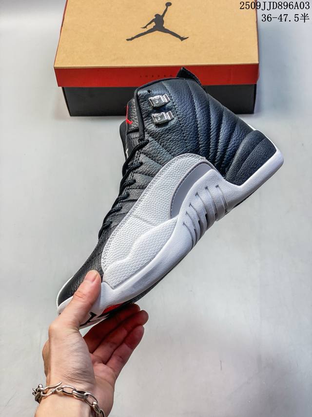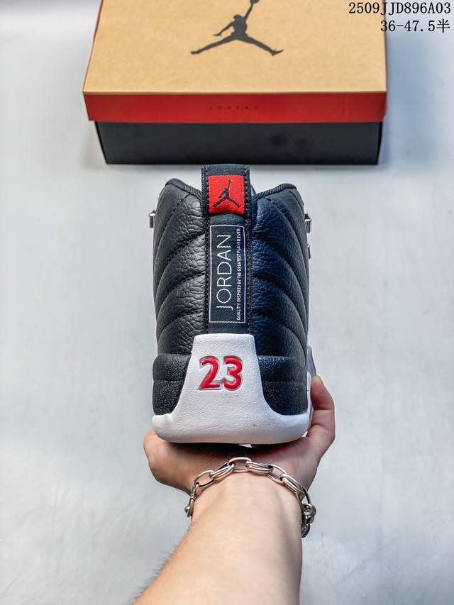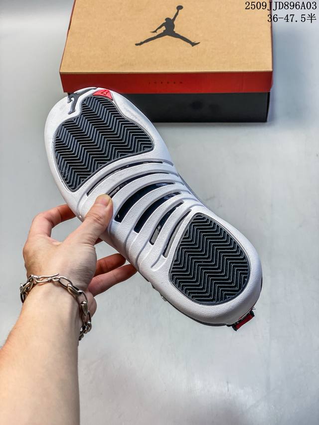 Air Jordan 12 Retro Melo High Top Replica White Blue Silver Aj12 Jordan 12 Generation Aj12 Joe 12 High Top Replica White Blue Silver Jordan Basketball Shoe Series Aj12 Melo 2025 The overall design continues the classic shoe shape of the Air Jordan 12. Its design is inspired by Anthony's rookie season with the Denver Nuggets. The overall color scheme faithfully restores the white and blue dress of the Nuggets jersey, paying tribute to Anthony's rookie season; the entire shoe body is made of white leather with a white lychee frame overlay, and the white Jumpman logo on the toe is embellished, which is particularly eye-catching under the white and blue main tone; the tongue is decorated with a university blue Jumpman logo and Tw3 lettering, which echoes the metal silver buckle on the side of the shoe. The classic Jumpman logo on the tongue is presented in blue embroidery, and the details are very attentive; the middle of the shoe body is supplemented with a white mudguard, and the heel shoe is covered with a black Jumpman The logo and embroidered Jordan branding are paired with the iconic white 23 to highlight the shoe's identity; supplemented by Air Zoom cushioning and a large carbon plate, it provides excellent cushioning and stability.