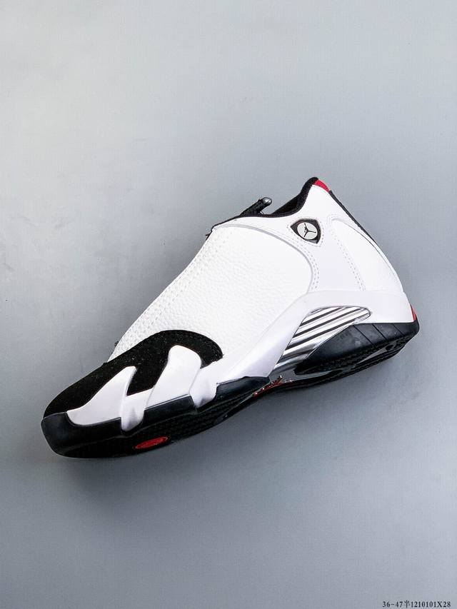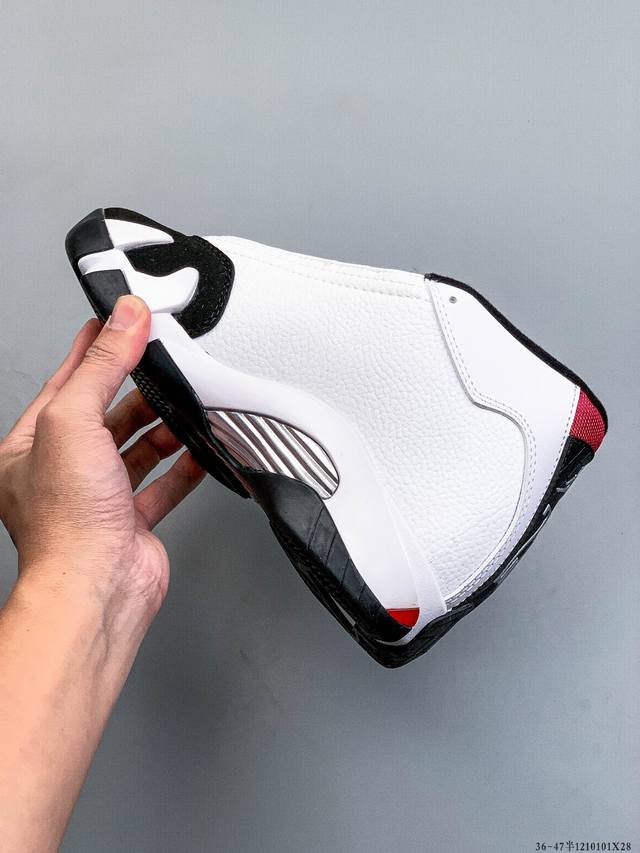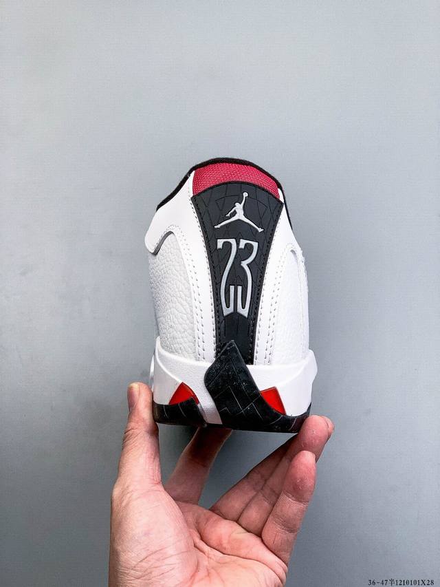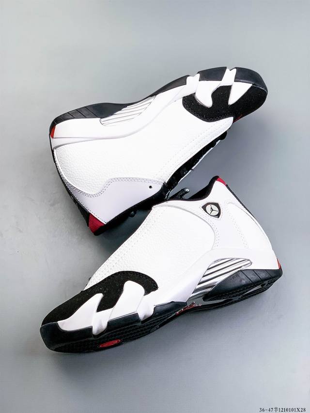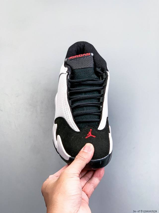 Air Jordan 14 Retro Ferrari Mid-Top Red AJ14, a unisex Jordan basketball shoe. The entire shoe features a red suede upper with black accents. A large area of the upper is crafted from very fine black suede, resulting in an outstanding texture. The iconic yellow shield logo of the Air Jordan 14 is adorned with a black Jumpman logo on the side, enhancing the details and showcasing the core design elements of the Air Jordan 14. The tongue features a striking yellow "Jordan" lettering, and the mini Jumpman logo on the toe is presented in black, making the shoe even more eye-catching. The large "23" below the Jumpman logo on the heel is accented with yellow. Finally, a silver TPU carbon fiber surround encasing the black midsole, paired with a black and silver outsole and a red Jumpman logo, completes the design. Ddd 1210101X28 DDD
