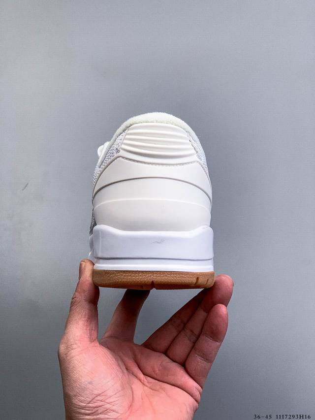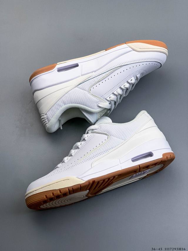 Air Jordan 2 3 Winter New Cushioning Trendy Basketball Shoes. The Jordan 2 3 sneakers cleverly blend design elements from the AJ2 and AJ3, allowing you to showcase a sophisticated and trendy style for everyday wear. They feature the classic AJ3 sole design, meticulously combined with the AJ2 upper. Premium materials create a luxurious look. The upper combines natural leather and synthetic materials for outstanding structure and durability. Nike Air cushioning in the heel and forefoot provides a comfortable cushioning experience. The rubber outsole delivers strong traction. The tongue features the Wings logo, and the toe box has perforations. DDD 1117293H16 DDD