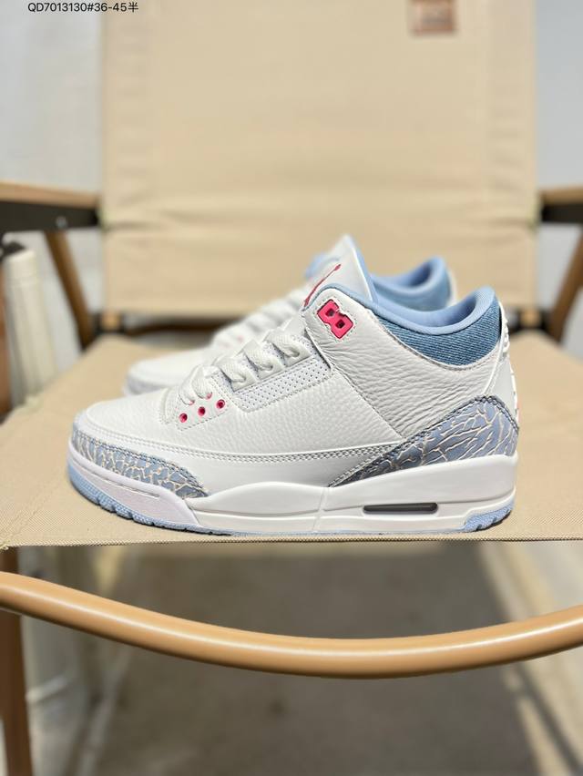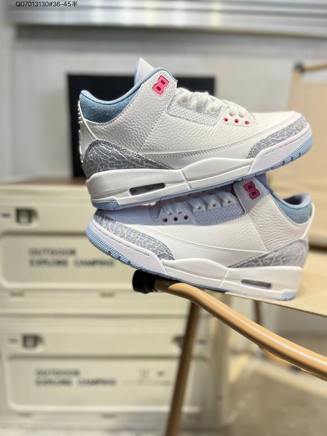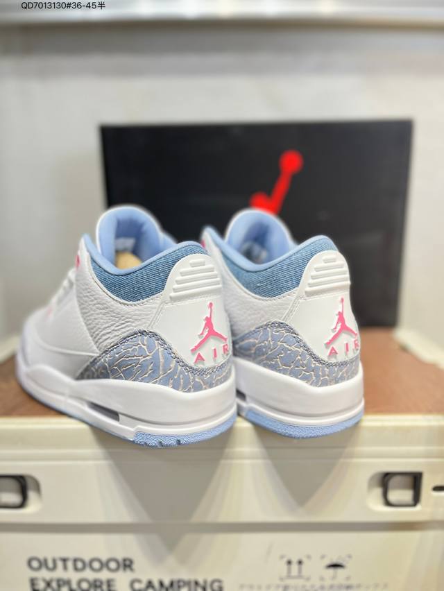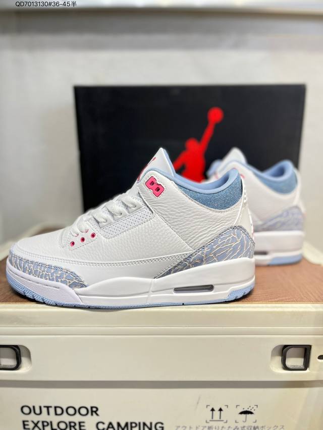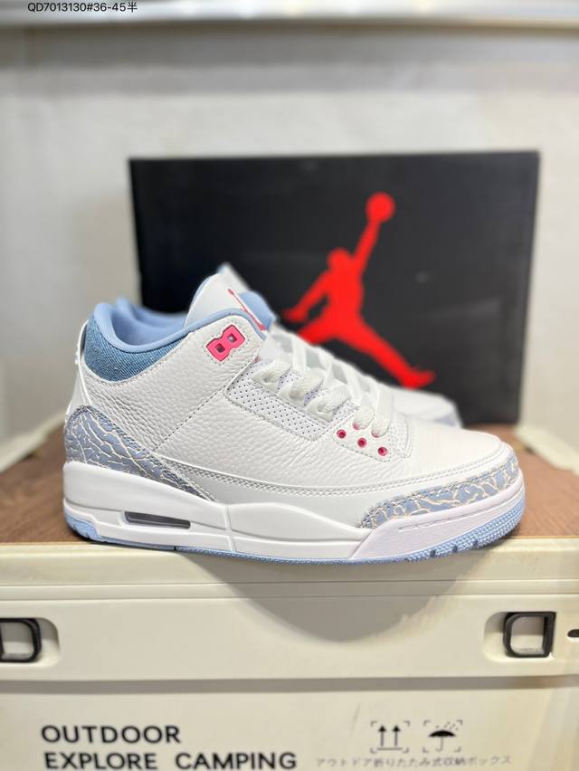 #Air Jordan 3 Cobalt Bliss Aj3 Joe 3 Pastel Fluorescent Hq0784-101 #The upper is built on pure white leather, creating a refreshing and clean visual tone. The refreshing and eye-catching "Cobalt Blue" with interweaving dark and light blue patterns gives the shoe a unique artistic appearance, retaining the charm of the Aj3's iconic elements while injecting a new fashion gene. The soft touch provides a comfortable wearing experience, while the collision and fusion of retro denim style and modern fashion sense create a unique and trendy look. Hq0784 Qd7013130#36-45 Half