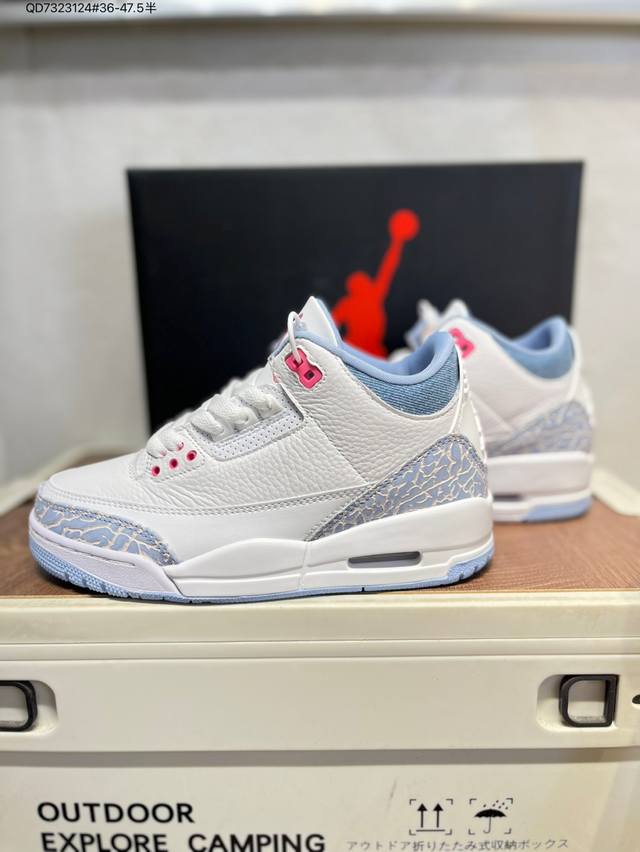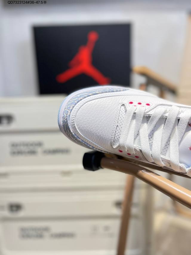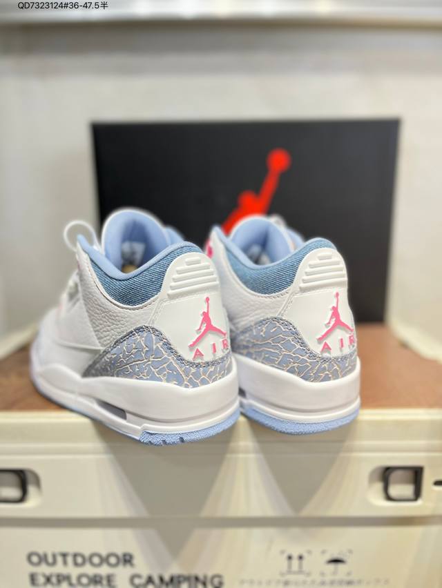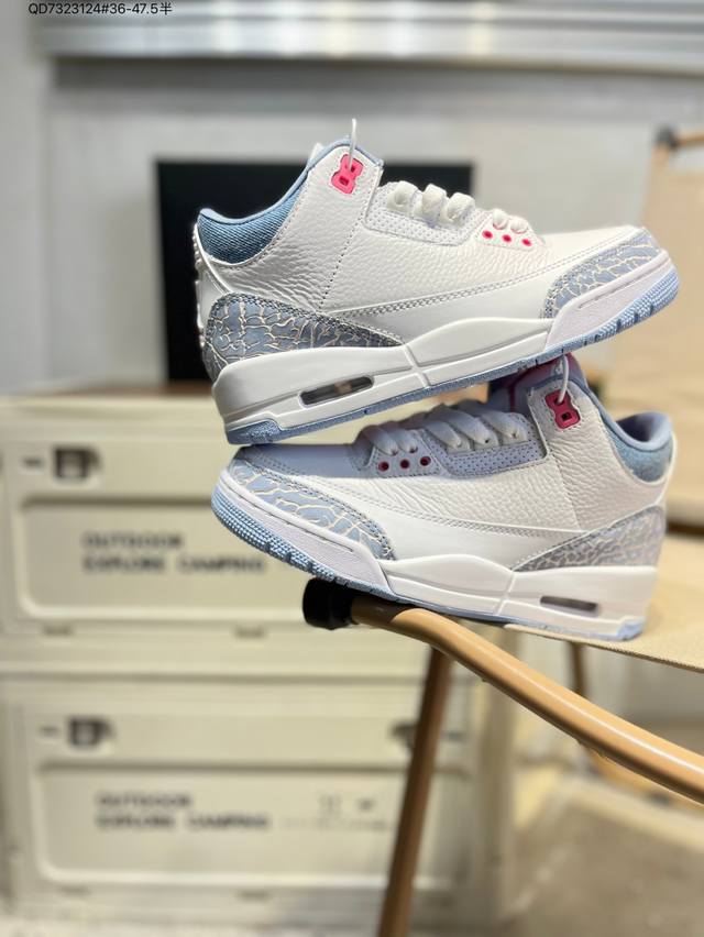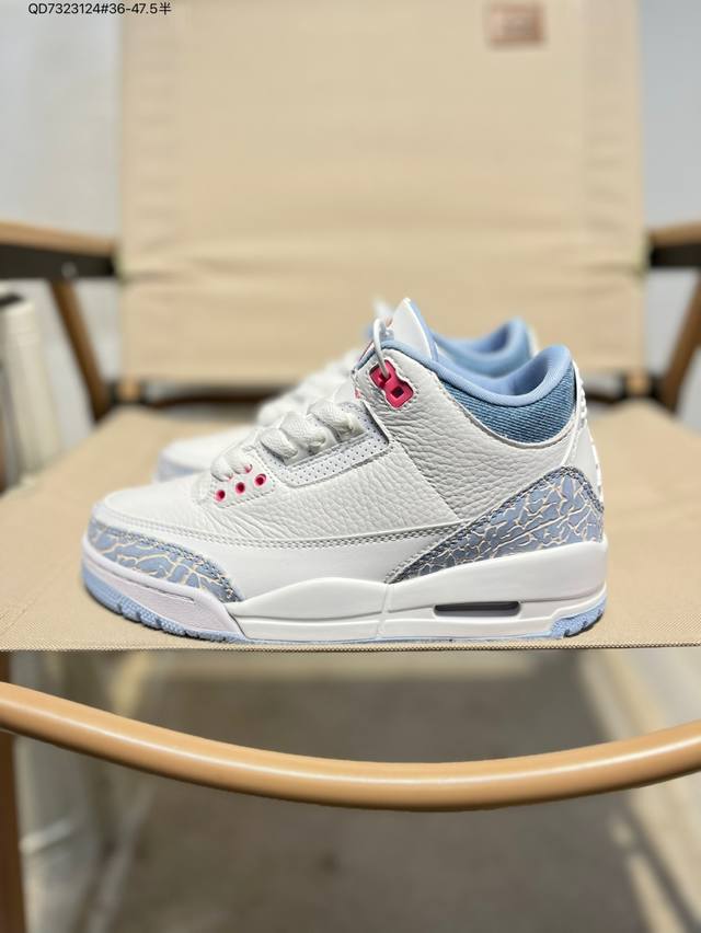 #Air Jordan 3 Cobalt Bliss Aj3 Joe 3 Pastel Fluorescent Hq0784-101 #The upper is built on pure white leather, creating a refreshing and clean visual tone. The refreshing and eye-catching "Cobalt Blue" with interweaving dark and light blue patterns gives the shoe a unique artistic appearance, retaining the charm of the Aj3's iconic elements while injecting a new fashion gene. The soft touch provides a comfortable wearing experience, while the collision and fusion of retro denim style and modern fashion sense create a unique and trendy look. Hq0784 Qd7323124 #36-47.5 Half
