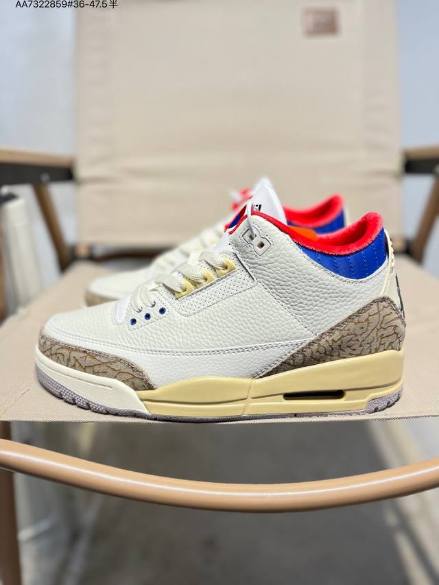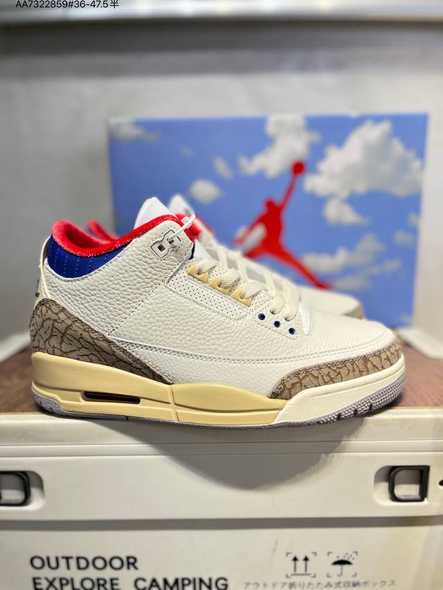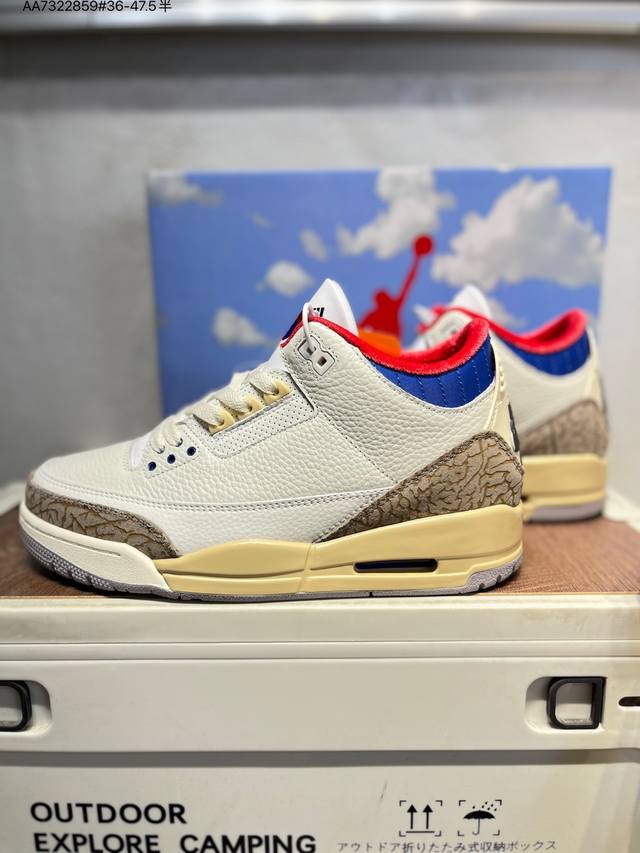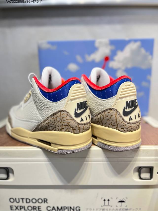 Air Jordan 3 Retro Seoul. Compared to the original 2018 Seoul Air Jordan 3, this retro version retains the iconic white, blue, red, and black color scheme and classic elephant print design, presenting a deeper and more powerful visual effect. Style Code: Ib1482 Aa7322859 #36-47.5 Half
