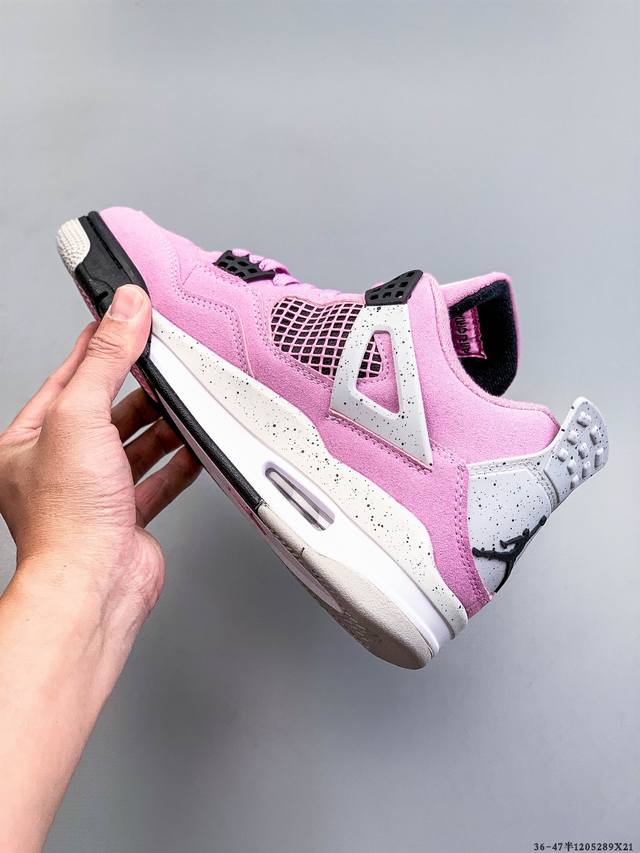Air Jordan 4 AJ4 mid-top retro casual sports basketball shoe. Adhering to the design philosophy of lightweight speed basketball shoes, this shoe reduces weight while improving comfort. The midsole continues the use of a split, visible Air Sole unit in the heel. The lacing eyelets and heel pull tab are inspired by basketball nets, cleverly integrating basketball into the shoe's design, giving it a fluid, rhythmic, and elegant feel. (Ddd 1205289X21 DDD)