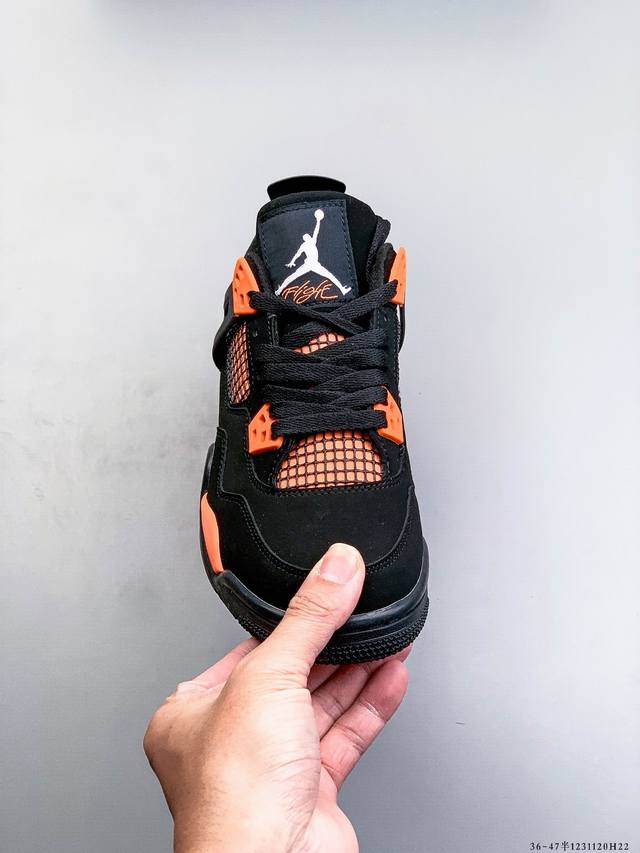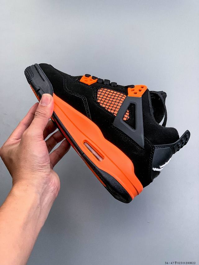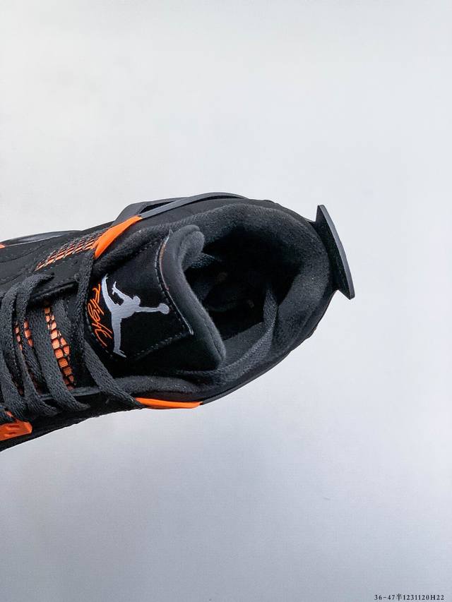 Air Jordan 4 AJ4 mid-top retro casual sports basketball shoe. Adhering to the design philosophy of lightweight speed basketball shoes, this shoe reduces weight while improving comfort. The midsole continues the use of a split, visible Air Sole unit in the heel. The lacing eyelets and heel pull tab are inspired by basketball nets, cleverly integrating basketball into the shoe's design, giving the overall shoe a fluid, rhythmic, and elegant feel. (Ddd 1231120H22 DDD)