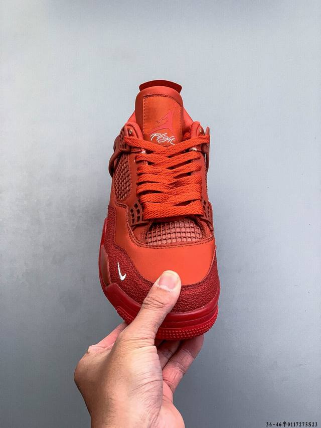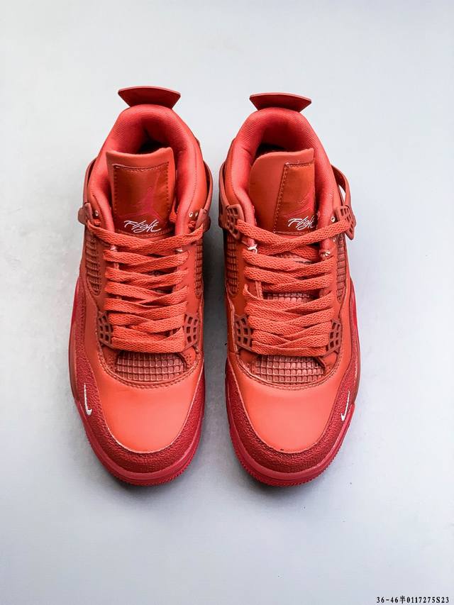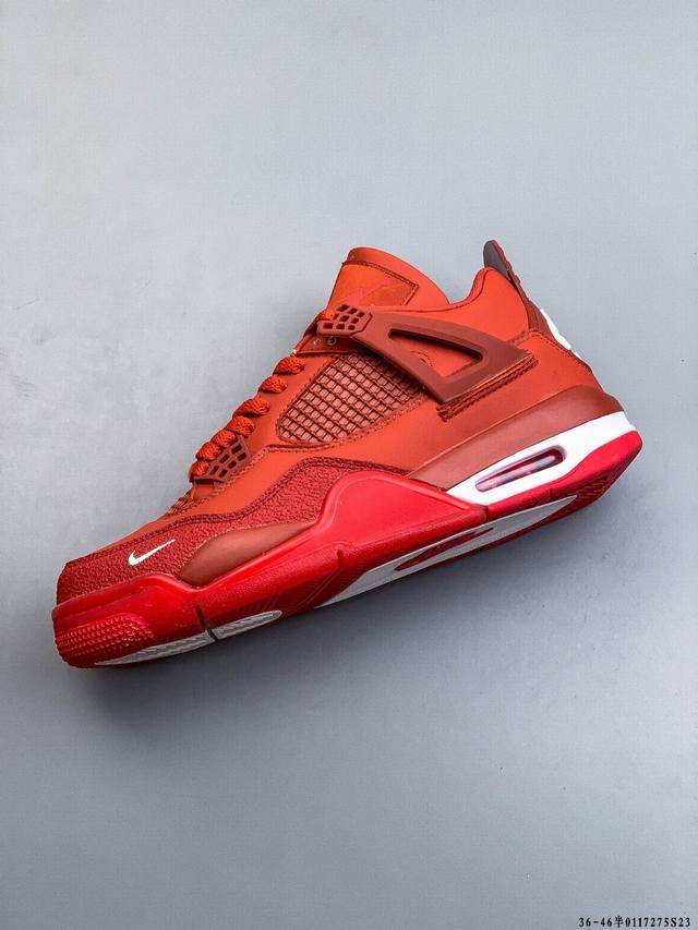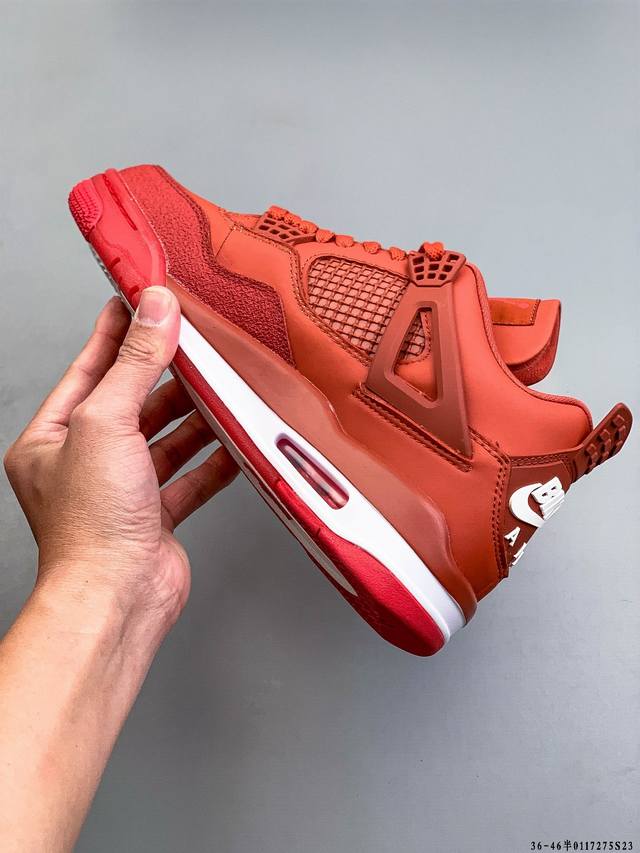Air Jordan 4 AJ4 mid-top retro casual sports basketball shoe. Adhering to the design philosophy of lightweight speed basketball shoes, this shoe reduces weight while improving comfort. The midsole continues the use of a split, visible Air Sole unit in the heel, a feature inherited from its predecessor. The lacing eyelets and heel pull tab are inspired by basketball nets, cleverly integrating basketball into the shoe's design, giving it a fluid, rhythmic, and elegant feel. DDD 0117275S23 DDD