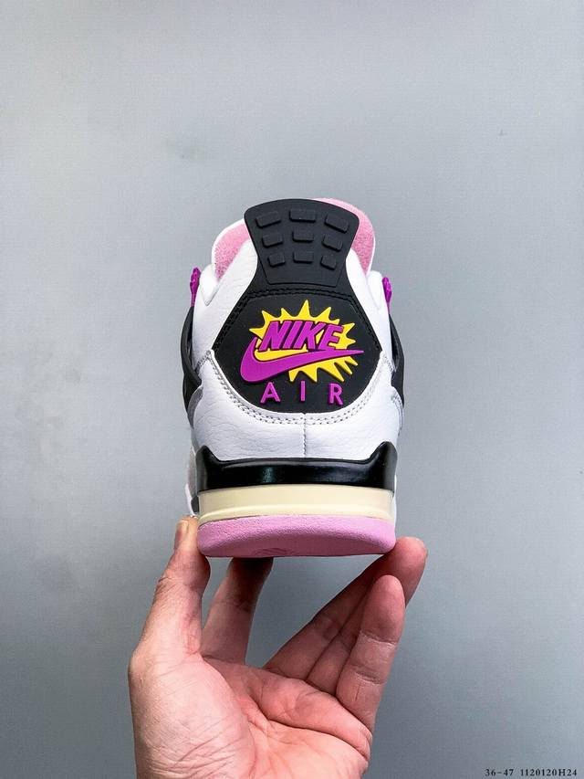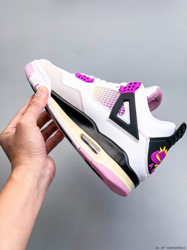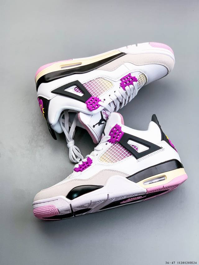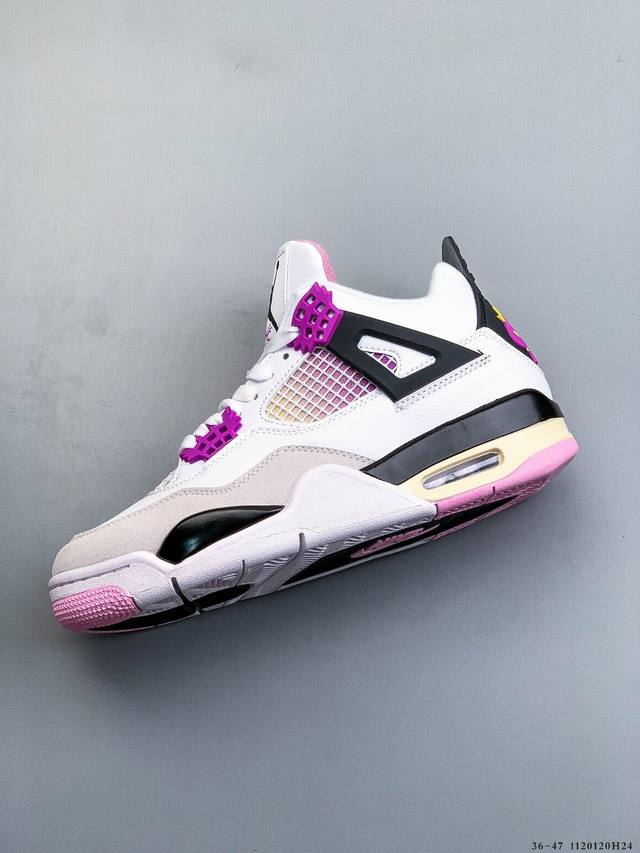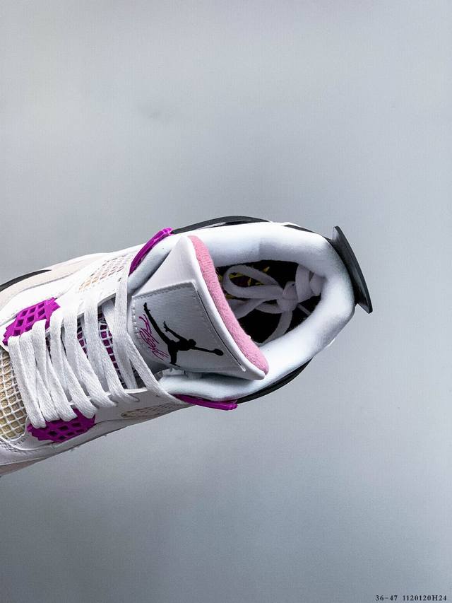 Air Jordan 4 AJ4 Mid-Top Retro Casual Sports Basketball Shoe. Adhering to the design philosophy of lightweight speed basketball shoes, this shoe reduces weight while improving comfort. The midsole continues the use of a split, visible Air Sole unit in the heel, a feature inherited from its predecessor. The lacing eyelets and heel pull tab are inspired by basketball nets, cleverly integrating basketball into the shoe's design, giving it a fluid, rhythmic, and elegant feel. DDD 1120120H24 DDD