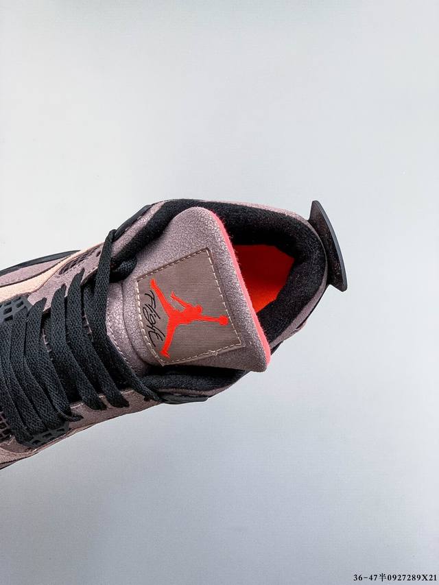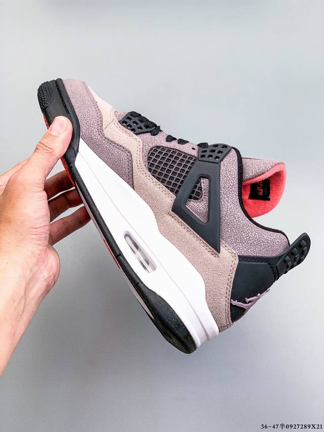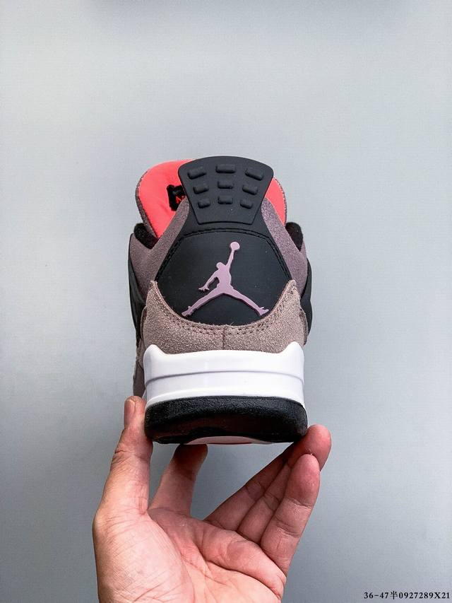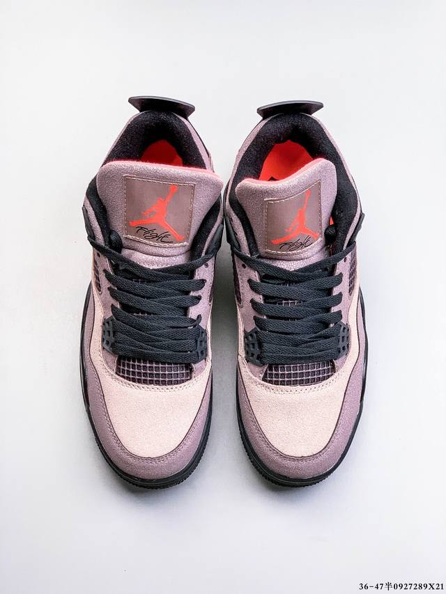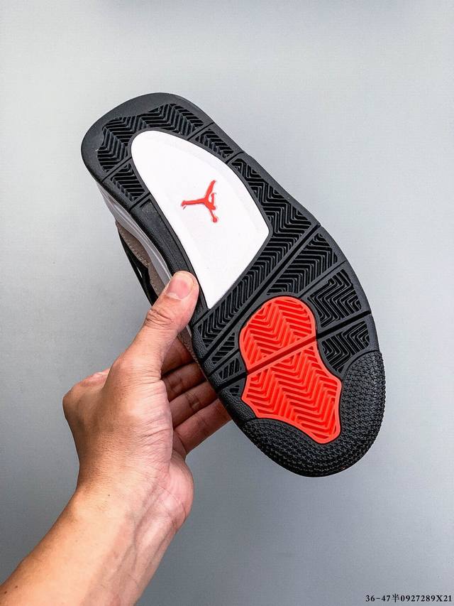 Air Jordan 4 Aj4 mid-top retro casual sports basketball shoe. Designed with the philosophy of lightweight speed basketball shoes in mind, it reduces weight while enhancing comfort. The midsole continues the previous model's use of a split rearfoot visible Air Sole cushioning. The lace eyelets and heel tab are inspired by a basketball net, cleverly integrating basketball into the shoe's design, imbuing the shoe with fluidity, rhythm, and elegance.