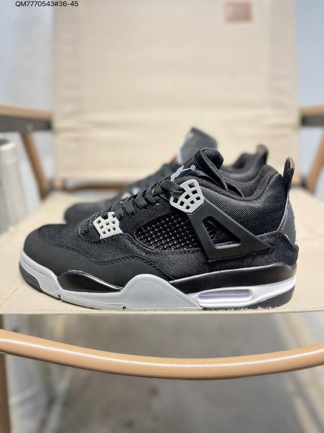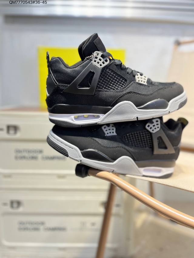 / Air Jordan 4 Retro Black Military Blue Michael Jordan AJ4 Mid-Top Retro Casual S