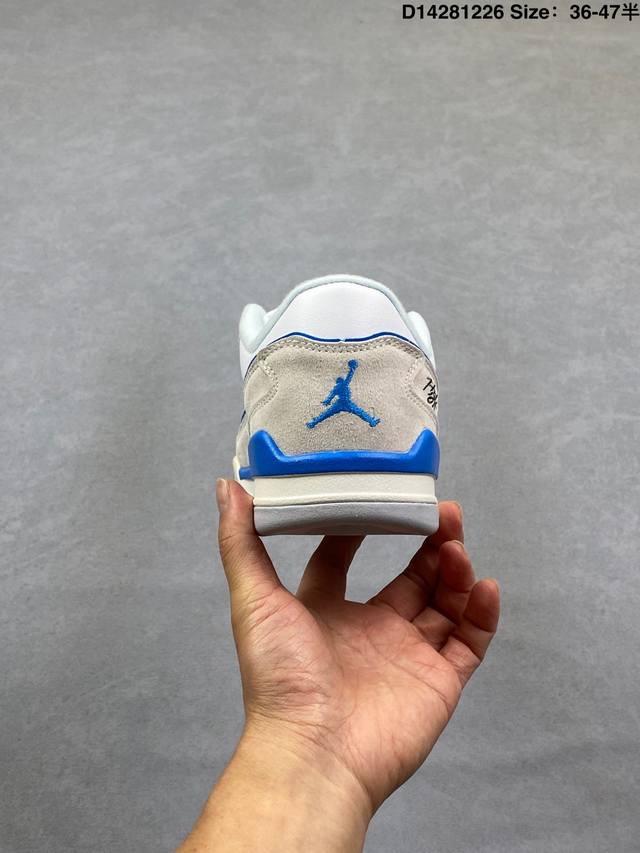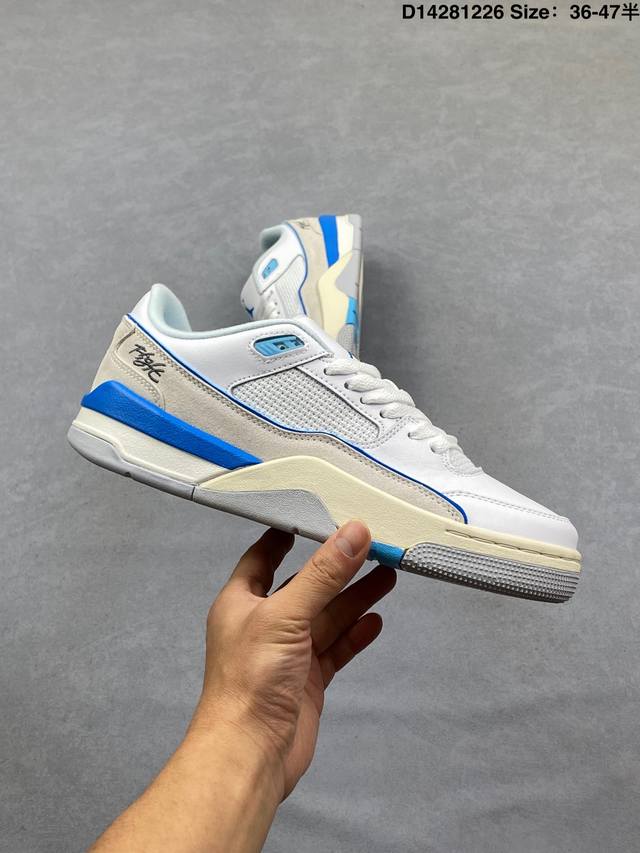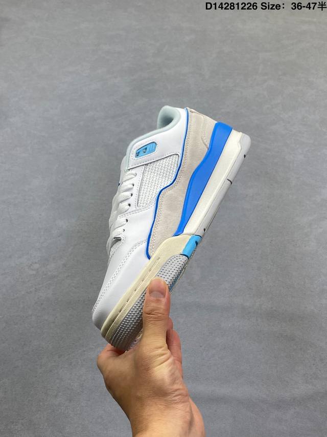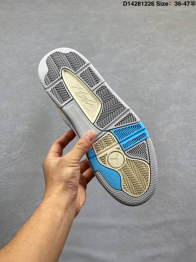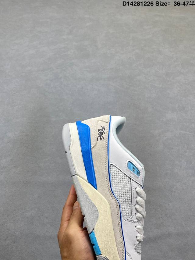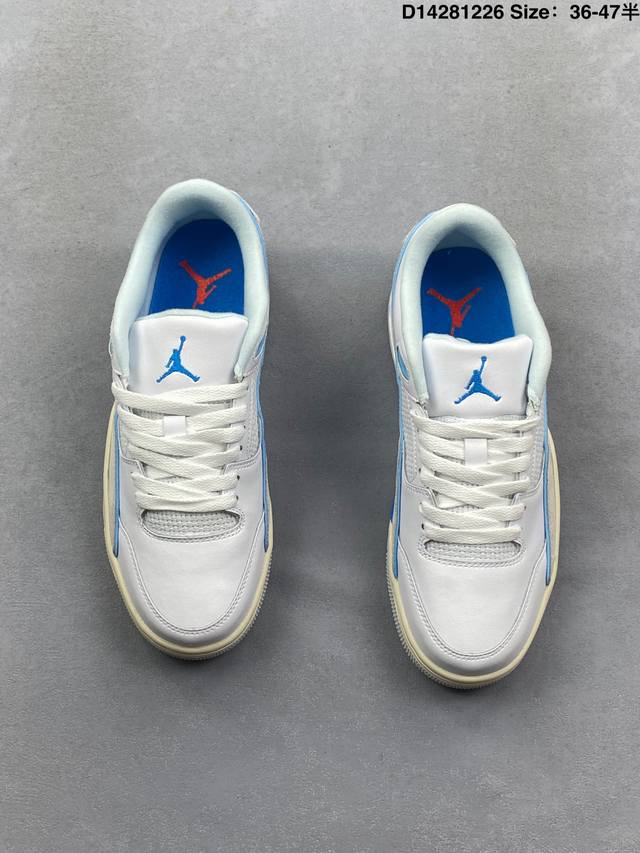 Air Jordan 4 Retro Flight Court Low-Top AJ4, Jordan 4, Low-Top White and Purple Jordan Basketball Shoes. The shoe is crafted from off-white leather, with purple embroidered Jumpman logos on the tongue and heel. The "Flight" lettering on the side of the heel is also presented in purple embroidery. Adhering to the design philosophy of lightweight speed basketball shoes, the design reduces weight while improving comfort. The midsole continues the use of a split, visible Air Solem cushioning unit in the heel. The lacing eyelets and heel pull tab are inspired by basketball nets, cleverly incorporating basketball into the design, giving the shoe a fluid, rhythmic, and elegant feel. Product Code: Fz9854-601 Code: D14281226 Size: 36-47.5
