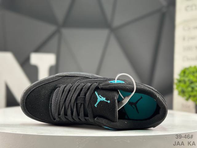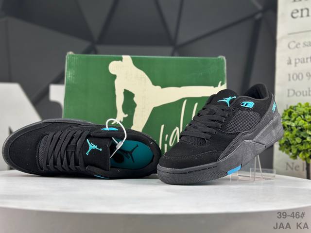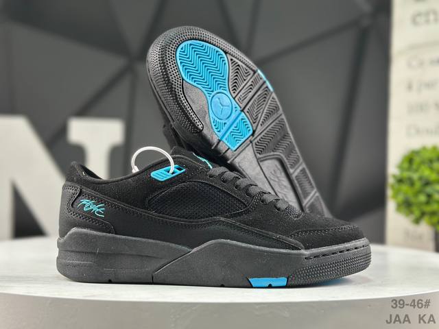 Air Jordan 4 Retro Flight Court Low-Top Black AJ4 Jordan 4 Low-Top Black Jordan Basketball Shoes. The upper is crafted from a black matte finish, complemented by a black leather frame on the sides. The Jumpman logo on the tongue and heel is accented with red embroidery, while the Flight logo on the heel side is presented with grey embroidery. Adhering to the design philosophy of lightweight speed basketball shoes, the design reduces weight while improving comfort. The midsole continues the use of a split visible Air Solet unit in the heel. The lacing eyelets and heel pull tab are inspired by basketball nets, cleverly integrating basketball into the design, giving the shoe a fluid, rhythmic, and elegant feel. Style Code: Hf3255 040 Size: As shown in the picture.