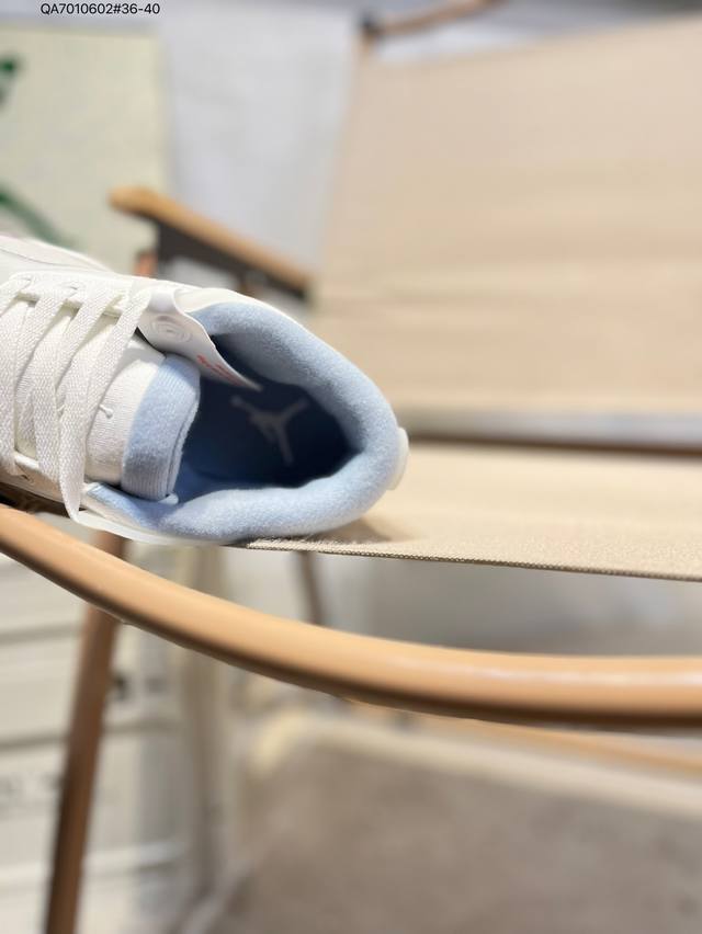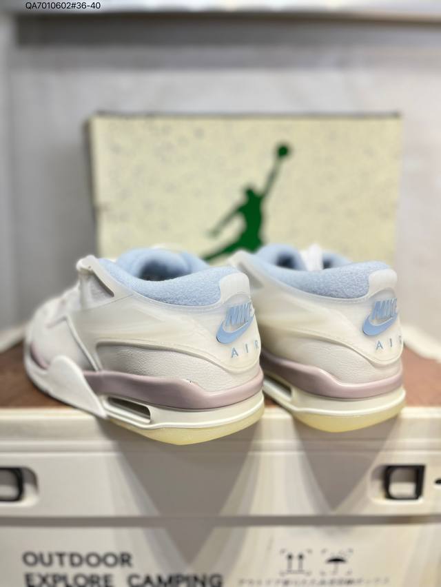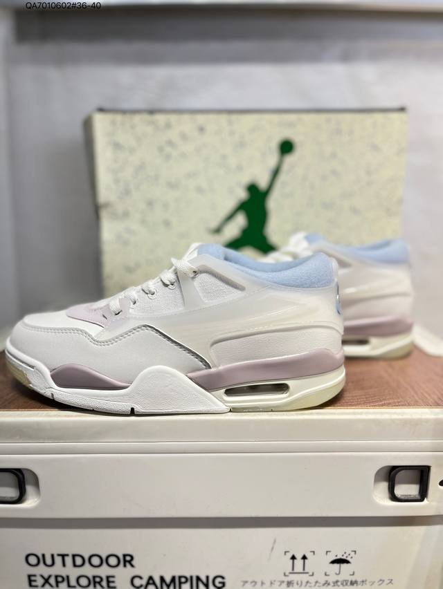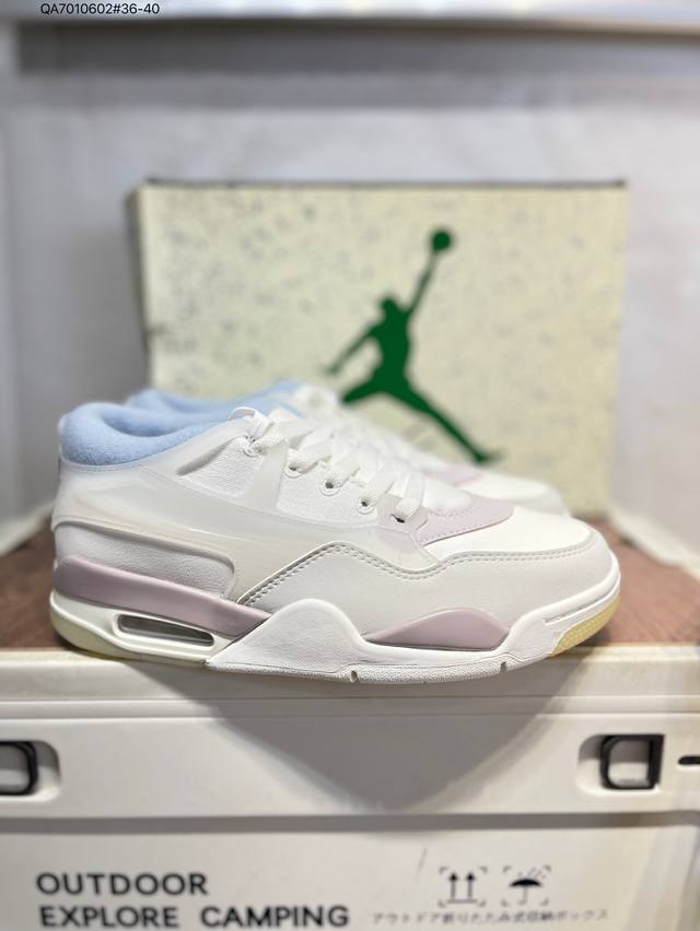 Air Jordan 4 Rm Jade Horizon Low-Top Aj4 Jordan 4, a member of the Jordan 4 basketball shoe series, is crafted from leather and suede. The upper is primarily light green, accented by a gray suede frame at the toe. While retaining the classic Air Jordan 4 styling, the original mesh is removed, and light green laces enhance the shoe's overall look. A green tongue tag emblazoned with a white Jumpman logo further enhances the shoe's identity. The upper and heel tabs are constructed from light green TPU, adding a touch of color. The heel features a white Nike Swoosh logo and Air. The midsole continues the previous model's split, visible Air Sloem unit. A distressed, oxidized midsole and off-white green rubber outsole complete the design. Qa7010602#36-40