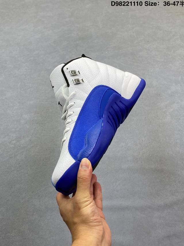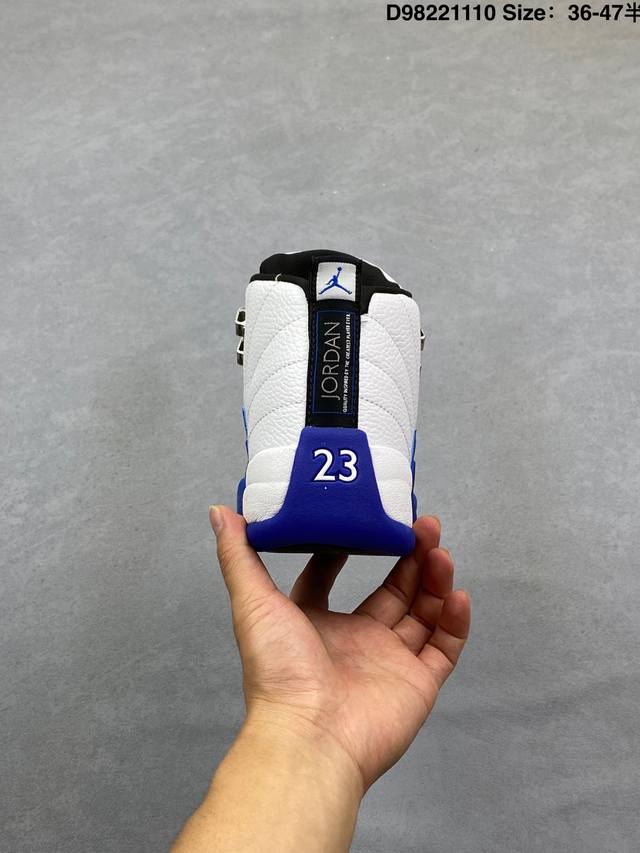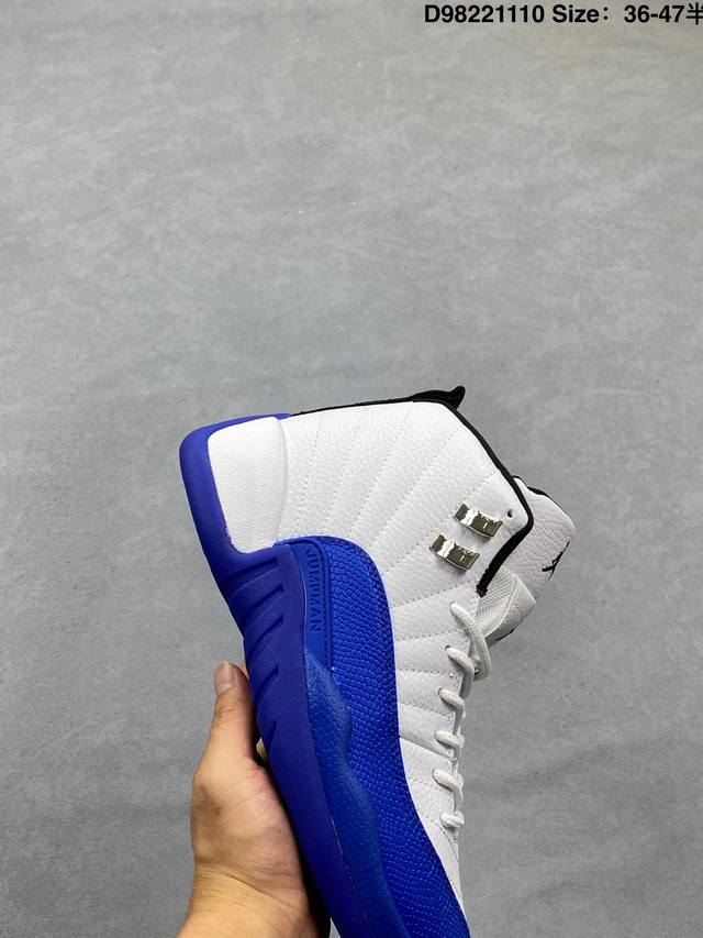 Air Jordan Aj12 Retro French Blue, Product Code: Ct8013-114. Special export batch, original last and data , molded for authentic 12th generation shoe shape. Imported original leather, original carbon fiber plate, original materials, original custom metal buckles, original embroidery. Supports full comparison with official products. Serving only 5% of discerning shoe customers. Ships overseas, supports various retail stores for authentic consignment. Size: 36-47.5. DDD D98221110 DDD