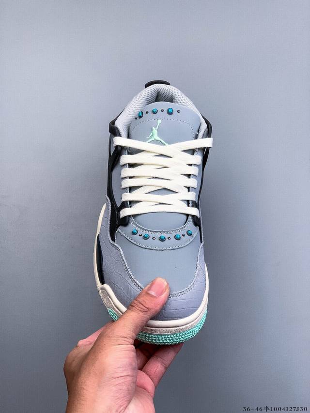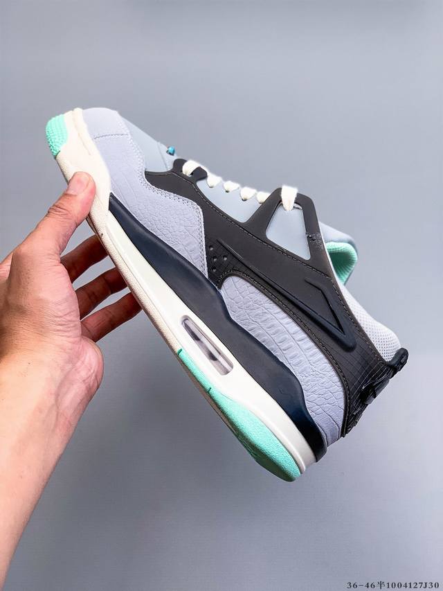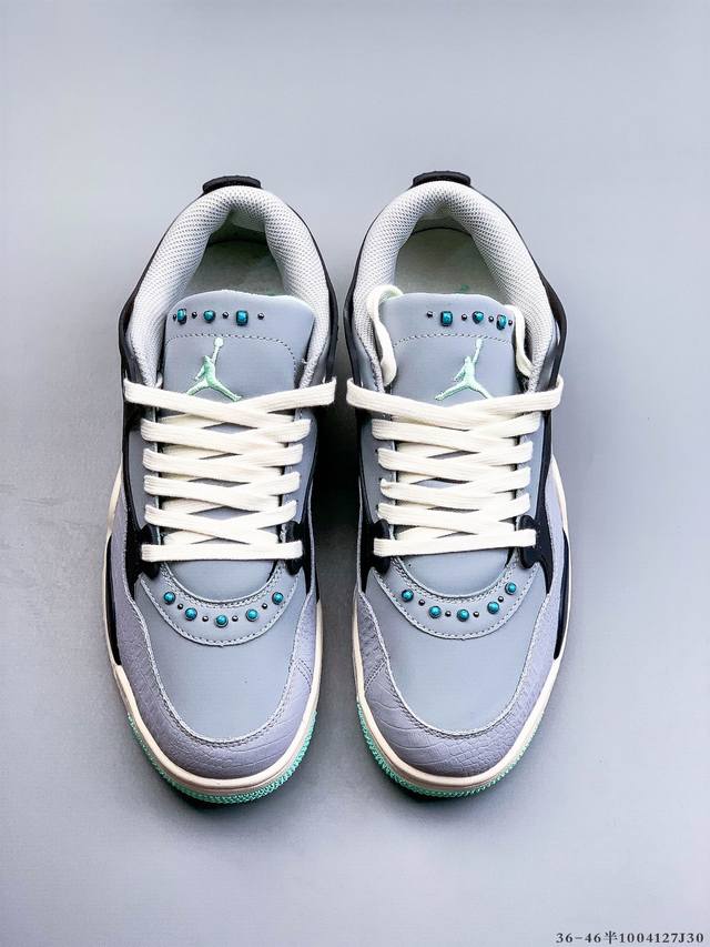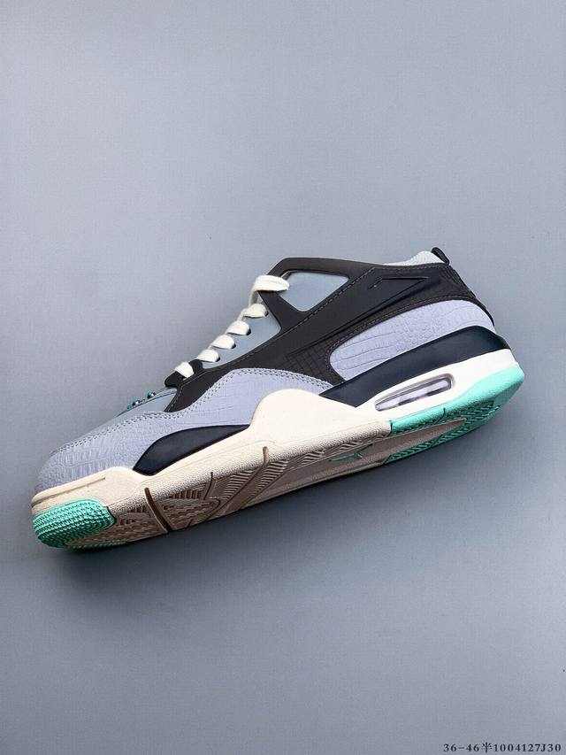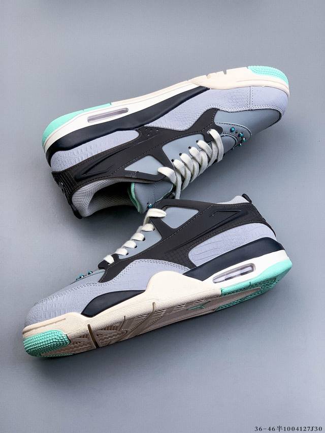Air Jordan AJ4 RM Remastered Low-Top Retro Basketball Shoes - First Look! Featuring a low-top design while retaining many classic AJ4 elements, the upper is constructed from a combination of leather and suede. The classic AJ4 TPU material extends to the heel for enhanced stability. The mesh design on the side of the shoe has been removed, but the Nike Air logo at the heel is retained , along with the Jumpman logo. The midsole also features a visible Air unit. The outsole and midsole are finished in a cream-colored colorway. (1004127J30)
