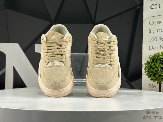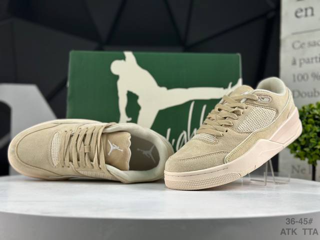 Air Jordan Flight Court Low-Top Retro Casual Basketball Shoes. The design is simple yet exudes a retro charm. The soft and elastic insole effectively cushions impact upon landing. The upper material conforms to the foot, and the outsole's tread pattern provides excellent grip. Product Code: Fz9854 200. Sizes: As shown in the picture.