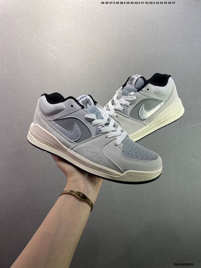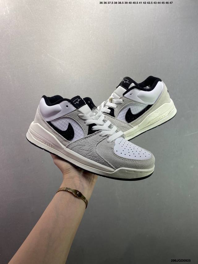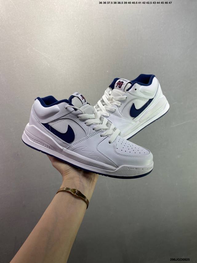 The Jordan Stadium 90 is filled with nods to Tinkerhathield's original design, including a midfoot mesh panel, a shark tooth outline on the lateral forefoot, a padded collar, and Nike Air heel branding. The shoe itself is constructed from a mix of mesh, leather, and suede materials for a modern aesthetic and features the brand's new Formula 23 underfoot cushioning technology. The Air Jordan Stadium 90 tongue label, featuring "Flight" printed on the inside of the tongue, completes the design.