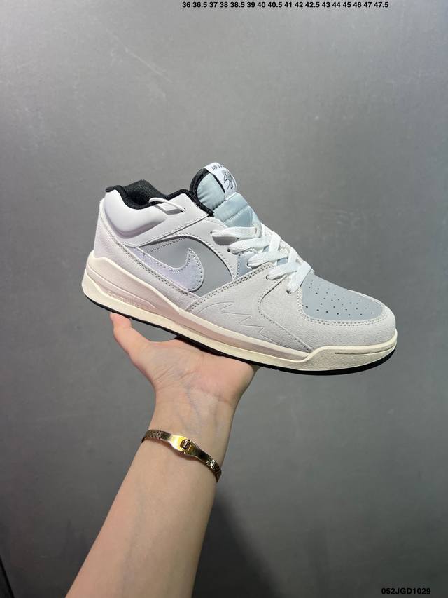 The Jordan Stadium 90 is full of homage to Tinkerhathield's original design, including a mesh panel in the midfoot, shark tooth silhouette on the lateral forefoot, a padded collar, and Nike Air heel branding. The shoe itself is constructed from a mix of mesh, leather, and suede materials, exuding a modern aesthetic, and features the brand's new Formula 23 cushioning technology. The Air Jordan Stadium 90 tongue label features the word "Flight" printed on the inside of the tongue, completing the design.