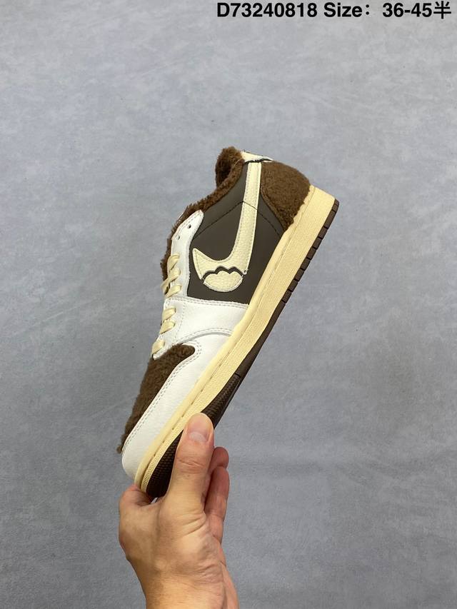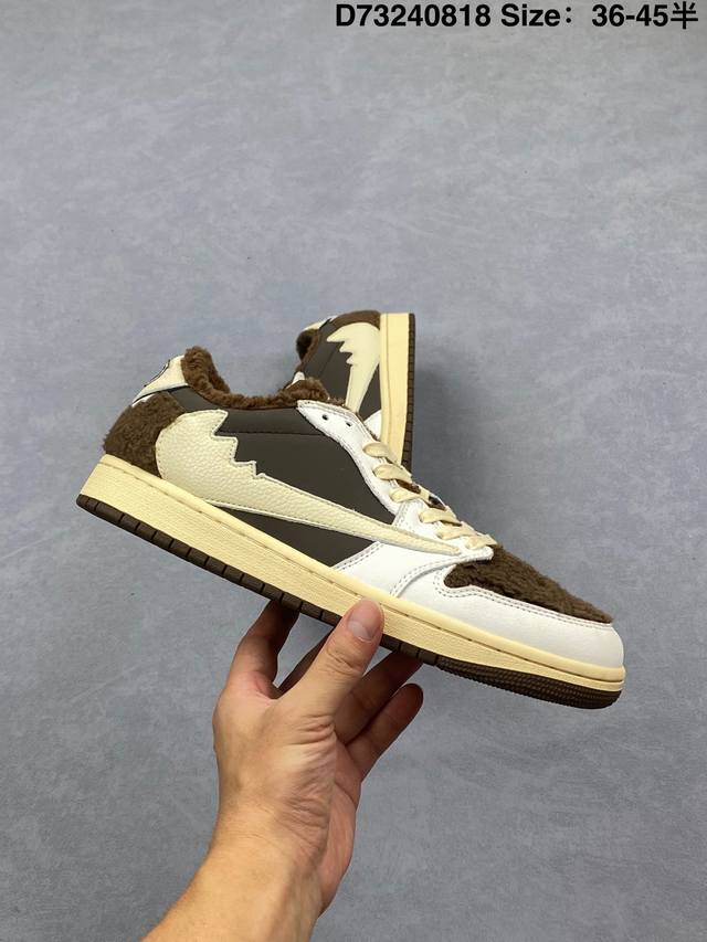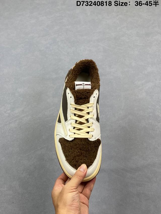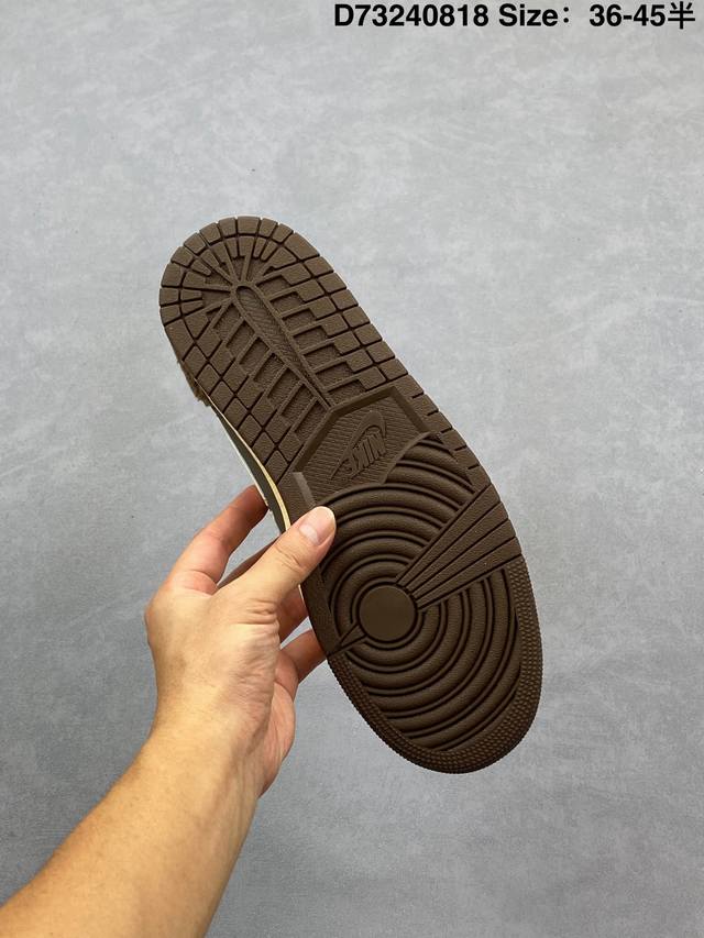 Aj1 Travis Scott X Air Jordan 1 "Reverse Mocha" Aj1 Joe 1 Ts Lightning joint inverted hook low-top cultural basketball shoes perfect quality delivery details as shown in the picture. The upper is neatly cut and punched neatly and cleanly. The midsole pull-up line is overall very clean.