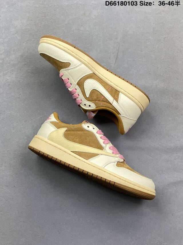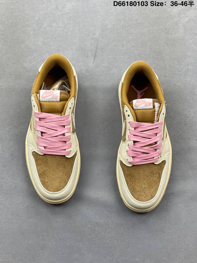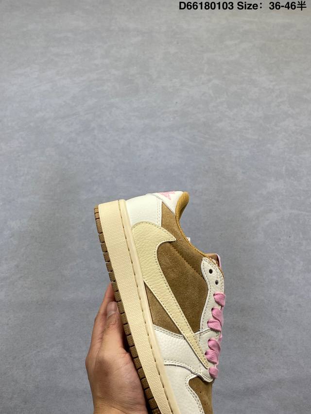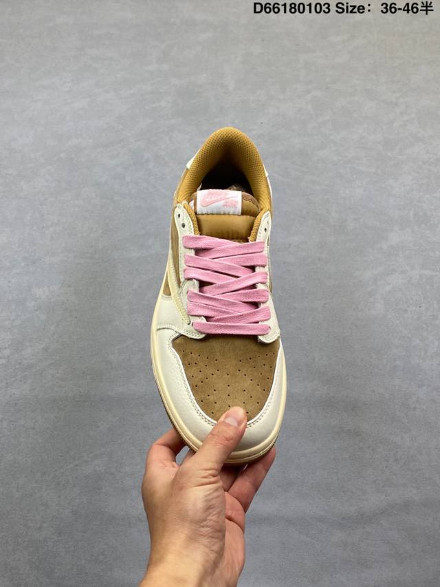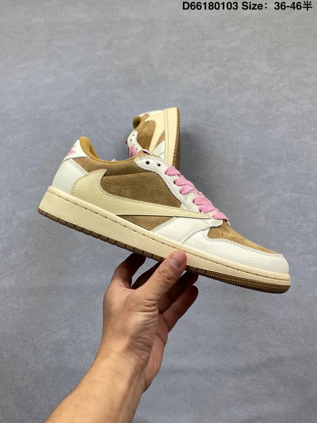 Aj1 Travis Scott X Air Jordan 1 "Reverse Mocha" Aj1 Jordan 1 Ts Lightning Collaboration Low-Top Basketball Shoes. Perfect quality, details as shown in the pictures. The upper is neatly cut, the perforations are clean and tidy, the midsole stitching is very clean overall. Product Code: Dm7866-162 DDD. Sizes: 36 36.5 37 38 38.5 39 40 40.5 41 42 42.5 43 44 45 46 (As shown in the picture). ID: D66 103 DDD