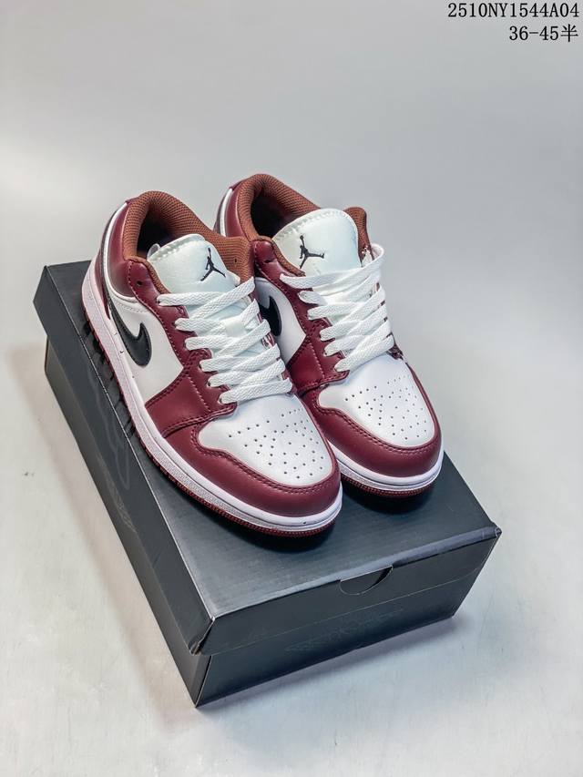 Nk Air Jordan 1 Low AJ1 White/Burgundy Low-top Casual Sneakers