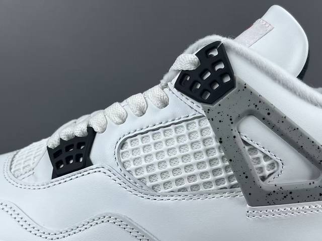 X-version improved AJ4 Jordan Air Jordan 4 Retro White Cement, stylish and versatile, shock-absorbing, non-slip, wear-resistant mid-top retro basketball shoes, men's white/grey, 2025 retro version.