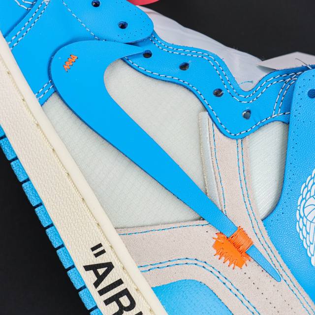 Channel Advantages! Ljr Pure Original AJ1 Off-White X Air Jordan 1 Retro High Og Unc North Carolina Blue. Produced by Ljr's pure original production line. Original cardboard and last development, perfect shoe shape, instantly recognizable. Exclusive private mold, original file mold opening, automatically distinguishing it from market versions. All shoes use Dongguan top-grain leather, no compromise on materials. 3D high-frequency three-dimensional effect with excellent details. Top-notch computer stitching throughout, perfect cleanliness. Product Code: Aq0818-148. Sizes: 40.5, 41, 42, 42.5, 43, 44, 44.5, 45, 46, 47.5, 48.5.