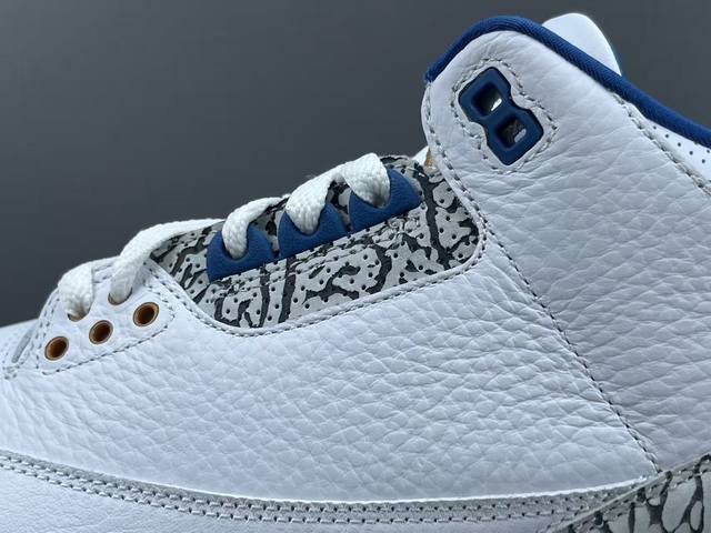 X-version Improved AJ3 Jordan Air Jordan 3 Retro White and True Blue Wizards Mid-top Retro Basketball Shoes White and Blue