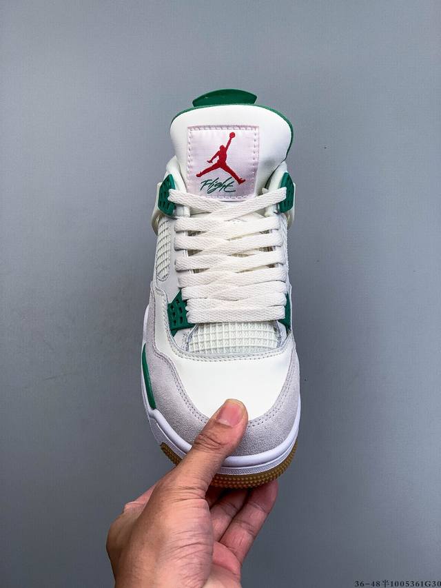 Company Grade Top Layer! Air Jordan 4 AJ4 Mid-Top Retro Casual Sports Basketball Shoes. Adhering to the design philosophy of lightweight speed basketball shoes, this shoe reduces weight while improving comfort. The midsole continues the use of a split, visible Air Sole unit in the heel, a feature inherited from its predecessor. The lacing eyelets and heel pull tab are inspired by basketball nets, cleverly integrating basketball into the shoe's design, giving it a fluid, rhythmic, and elegant feel.