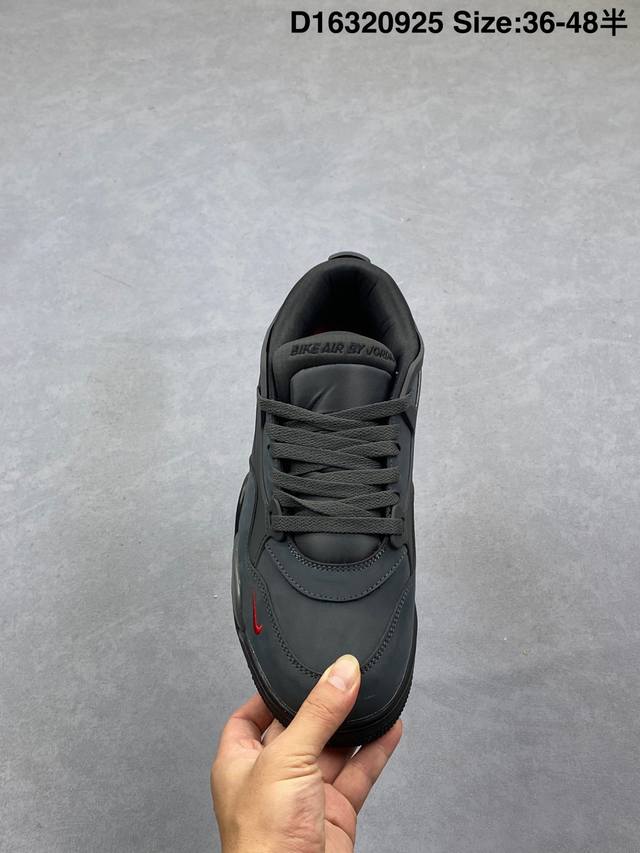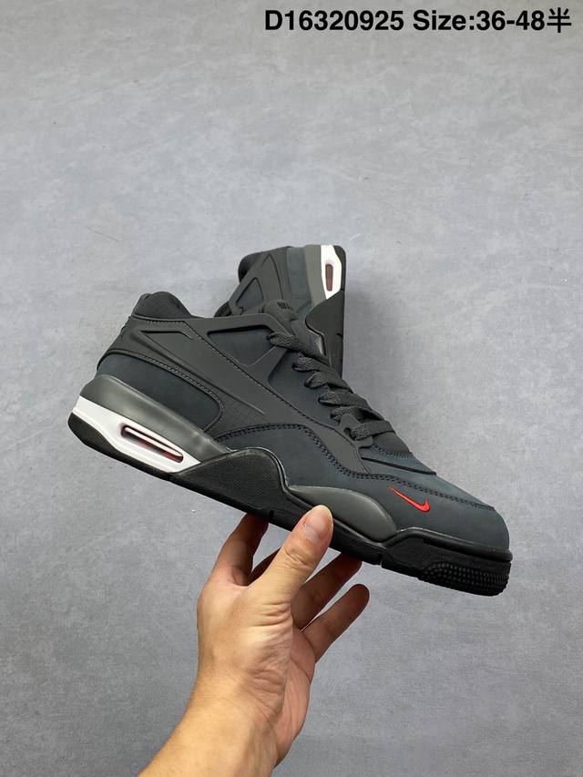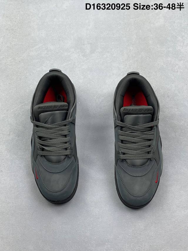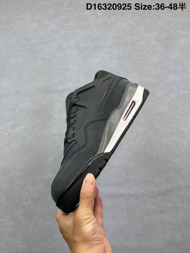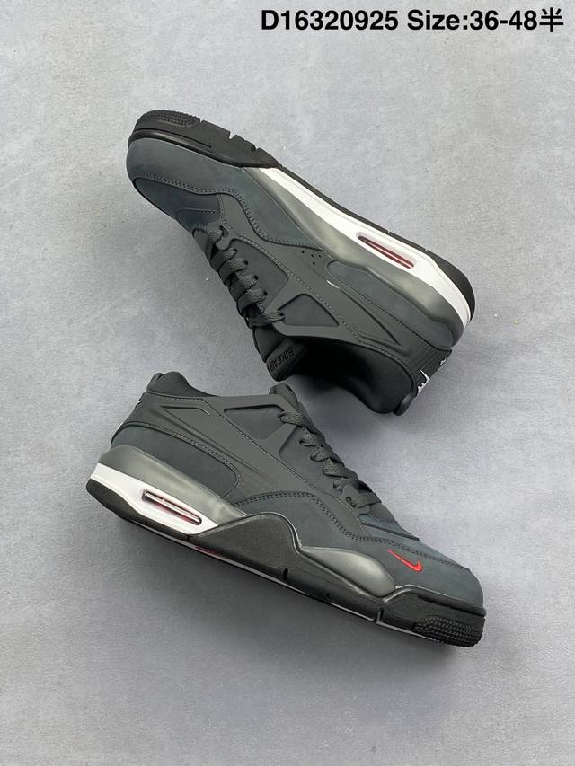 Nigel Sylvester X Air Jordan 4 Rm Anthracite Reset Smoky Gray Aj4 Jordan 4 Generation Aj4 Jordan 4 Reset Black Jordan Basketball Shoe Series The shoe is constructed entirely of leather and suede. The upper is primarily gray leather, with a beige and black suede frame on the toe. While retaining the classic Air Jordan 4 styling, the original mesh is removed, and black laces are used to enhance the overall look. A beige label on the tongue is embellished with black Bike logo, highlighting the shoe's identity. Black TPU material is used on the upper and heel pull tab, adding a touch of color. The mini Swoosh logo on the toe is accented with red, while the heel features a white Nike Swoosh logo and Air. The midsole continues the previous model's use of a split rearfoot visible Air Sloec unit. The off-white midsole and matching rubber outsole complete the design.