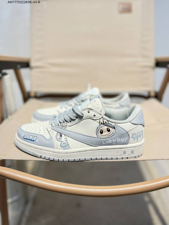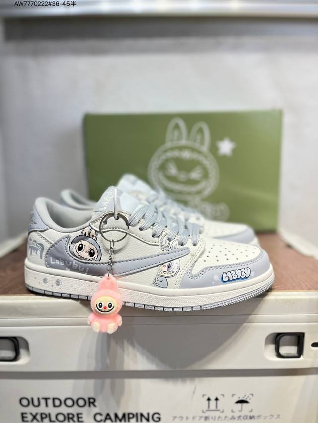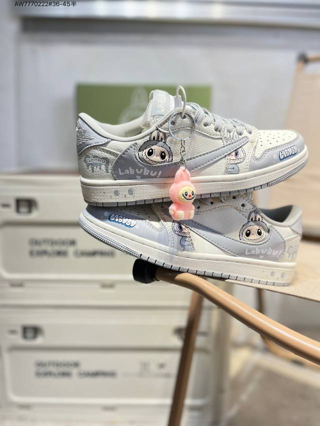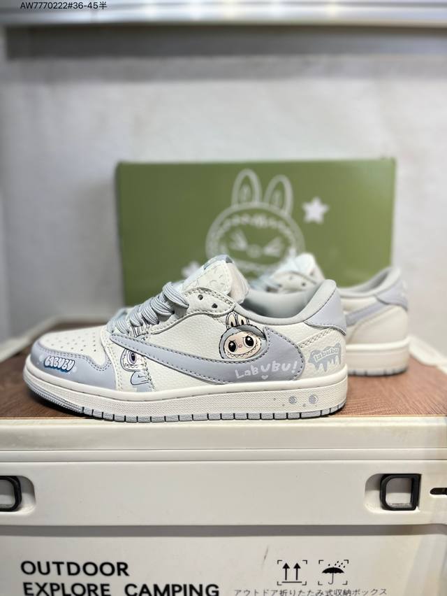 Company-grade first-layer leather Labubu x Jordan Air Jordan 1 Low Aj1 low-top series basketball shoes official synchronized color original product