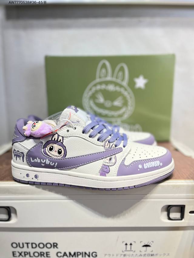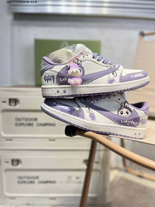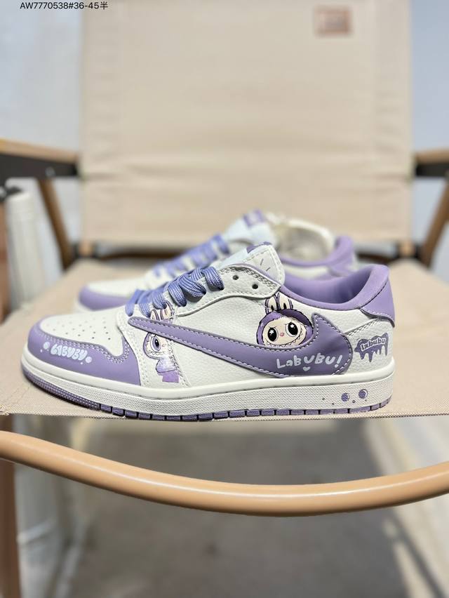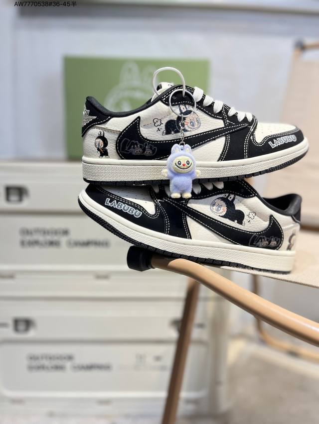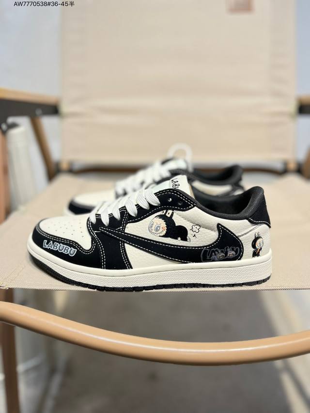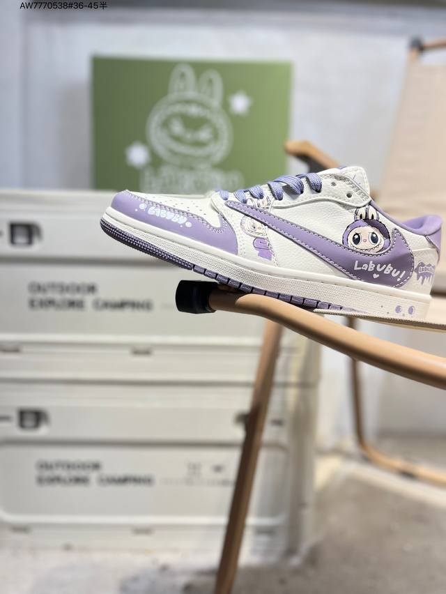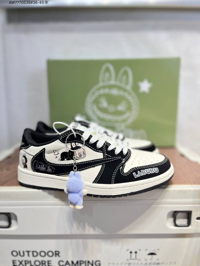 Company-grade first-layer leather Labubu x Jordan Air Jordan 1 Low Aj1 low-top series basketball shoes official synchronized color original product