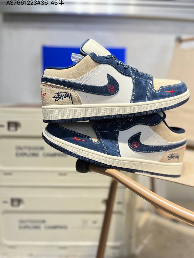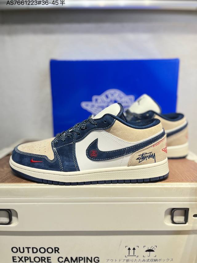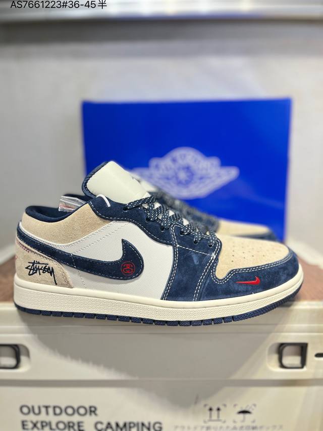 Company-grade top-grain Pisteus X Jordan Air Jordan 1 Low AJ1 low-top basketball shoes official synchronized colorway original product