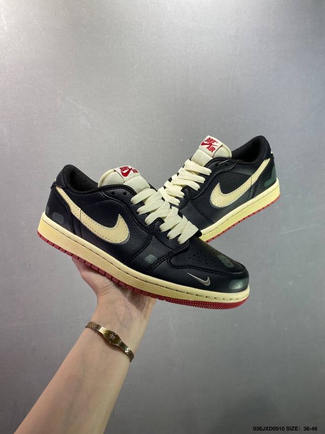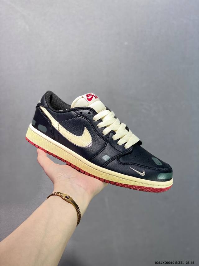 Company-level Nigel Sylvester X Air Jordan 1 Low distressed black and red