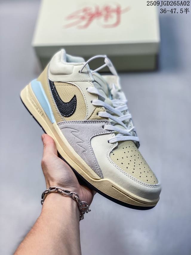 The Jordan Stadium 90 is filled with nods to Tinkerhathield's original design, including a midfoot mesh panel, a shark tooth outline on the lateral forefoot, a padded collar, and Nike Air heel branding. The shoe itself is constructed from a mix of mesh, leather, and suede materials for a modern aesthetic and features the brand's new Formula 23 underfoot cushioning technology. The Air Jordan Stadium 90 tongue label features "Flight" printed on the inside of the tongue, completing the design.