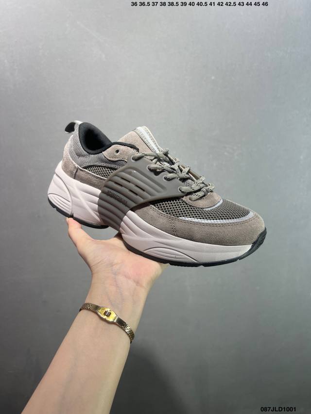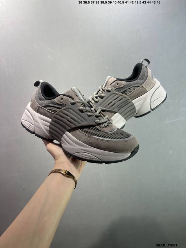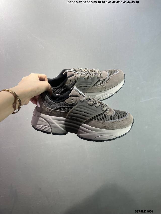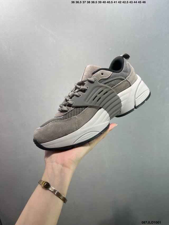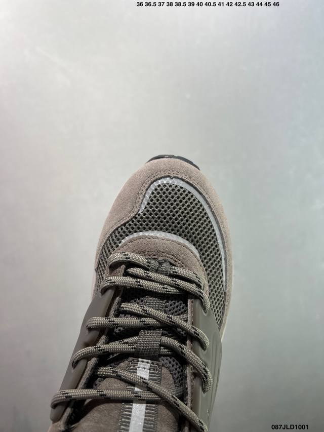 This shoe draws inspiration from the brand's retro running shoes and modern cutting-edge technology, featuring a layered base made of alternating fabric mesh and suede. In addition to a pull tab for easy on and off, the shoe also features a thick ribbed midsole, perforated side cages, and EVA foam for comfort. Bx