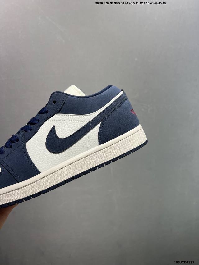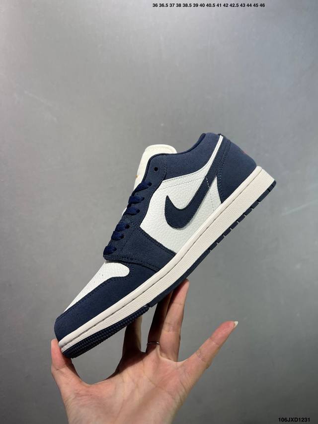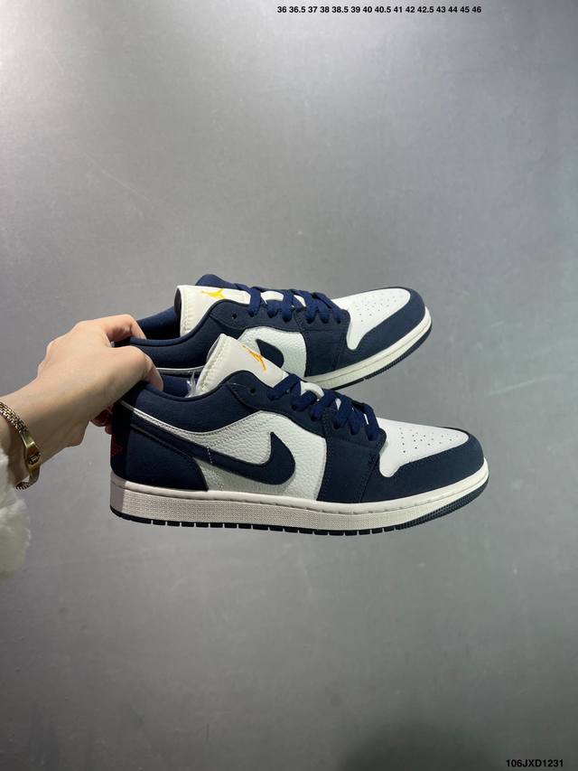 Factory Grade Air Jordan 1 Low (AJ1) Casual Sneakers, Official Colorway Synchronized. Features original leather, perforated toe box, full-glued insole, four-stitched upper, original woven label, and high-elastic sponge padding on the tongue. Official Product Code: 553558. Size: As shown. Code: 106Jxd1231.