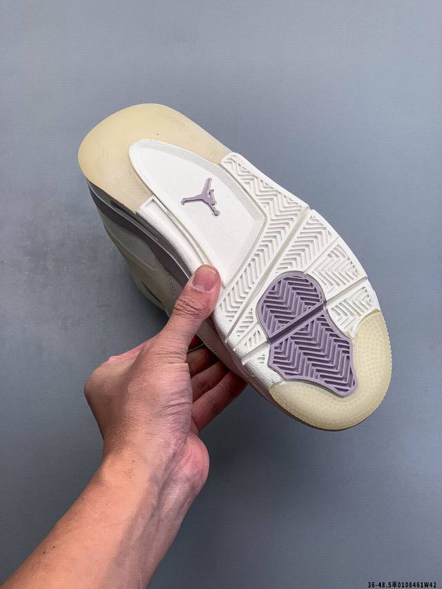 Factory Grade Air Jordan AJ4 RM Remastered Low-Top Retro Basketball Shoes - First Look! Featuring a low-top design while retaining many classic AJ4 elements, the upper is constructed from a combination of leather and suede. The classic AJ4 TPU material extends to the heel for enhanced stability. The mesh design on the side of the shoe has been removed. The Nike Air logo at the heel is retained, along with the Jumpman logo. The midsole also features a visible Air unit. The outsole and midsole are finished in a cream-colored color, completing the overall design. 0108461W42