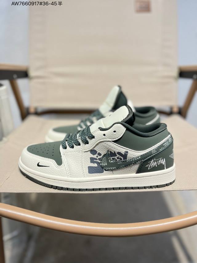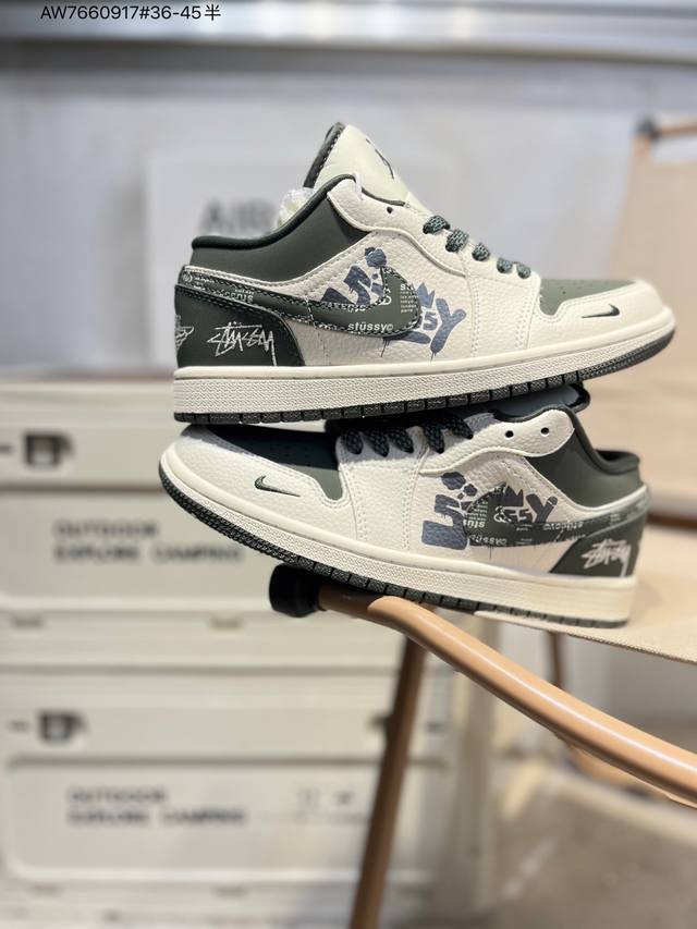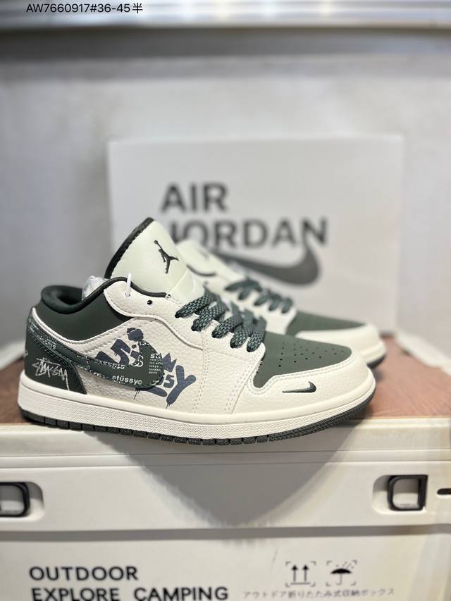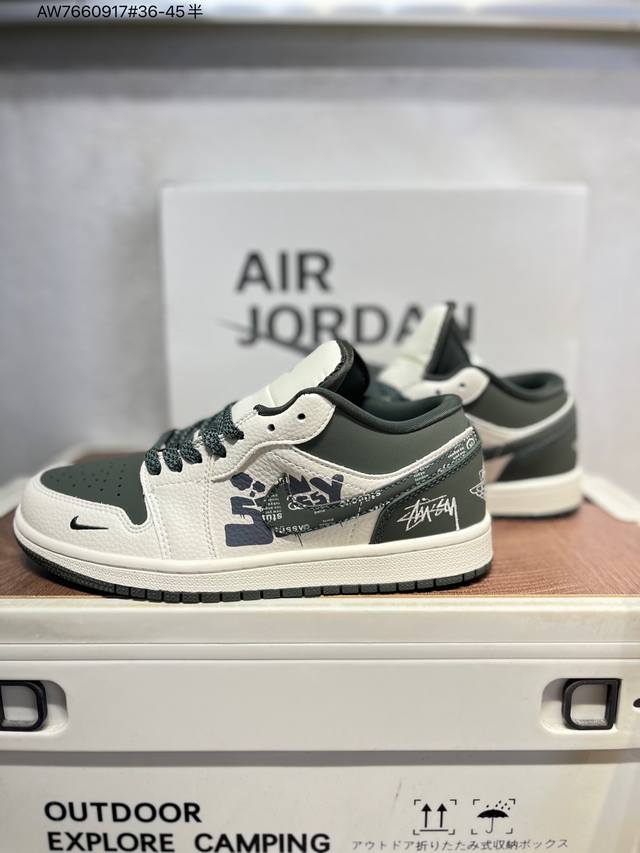 Factory Grade Top Layer Pisteus X Jordan Air Jordan 1 Low AJ1 Low-Top Basketball Shoes Official Synchronized Colorway Original Product