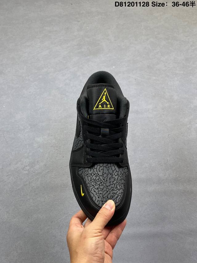 First Layer with Half Size DDD Air Jordan 1 Low Elephant Se Low-top Danger Warning Sign AJ1 Jordan 1 AJ1 Low-top Black and Yellow Elephant Pattern Unisex Jordan Basketball Shoes. Inspired by road danger warning signs, this low-top basketball shoe features a sleek black design with fine leather and a matching elephant print, offering both understated versatility and a distinctive, visually appealing look. The Swoosh logos on the sides are accented in black, while the mini Swoosh logo on the toe is presented in a striking fluorescent yellow. The Wings logo on the heel also features yellow stitching. The fluorescent yellow Jumpzman logo and Air on the tongue borrow from the triangular shape of traffic symbols, further emphasizing the danger warning color scheme. It's understated yet full of personality. DDD Product Code: Im6568-010 2025 Version DDD Sizes: 36 36.5 37.5 38 38.5 39 40 40.5 41 42 42.5 43 44 44.5 45 46 DDD Code: D81201128 Size: 36