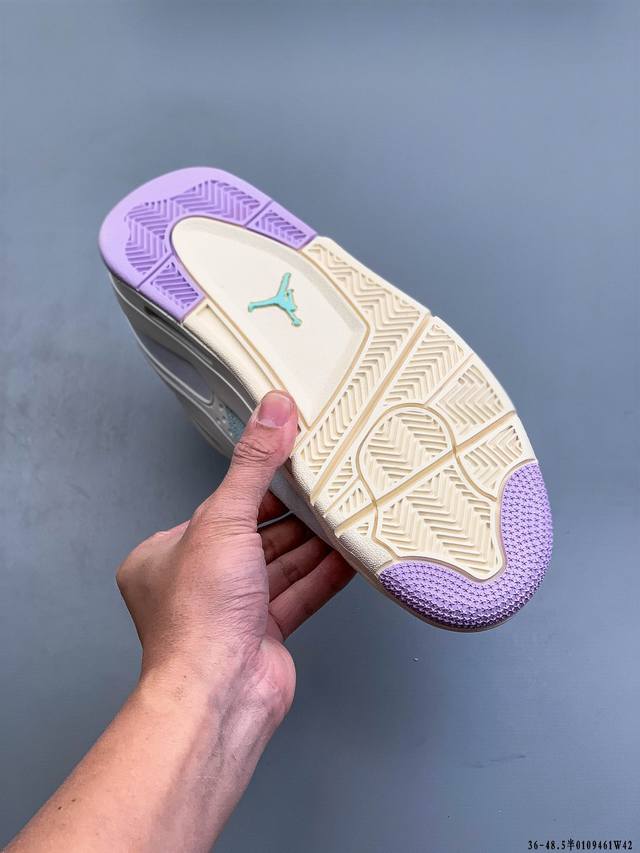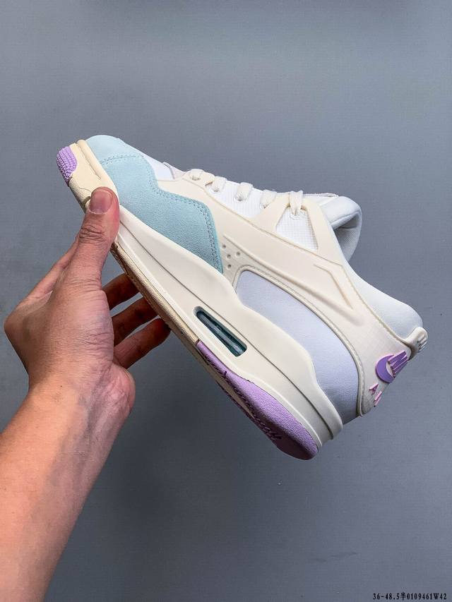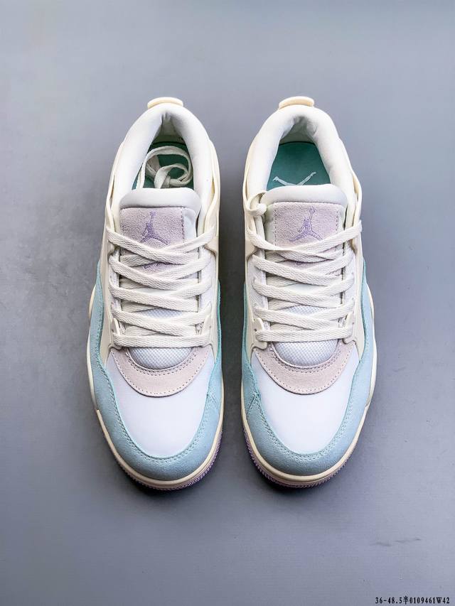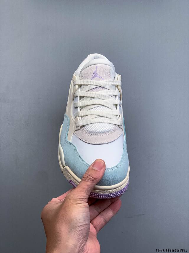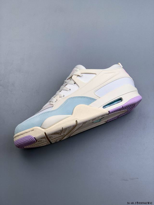 First look at the factory-grade Air Jordan AJ4 RM remastered low-top retro basketball shoes! Featuring a low-top design while retaining many classic AJ4 elements, the upper is constructed from a combination of leather and suede. The classic AJ4 TPU material extends to the heel for enhanced stability. The mesh design on the side of the shoe has been removed. The Nike Air logo at the heel is retained, along with the Jumpman logo. The midsole also features a visible Air unit. The outsole and midsole are finished in a cream color, completing the overall design. 0109461W42