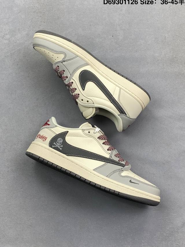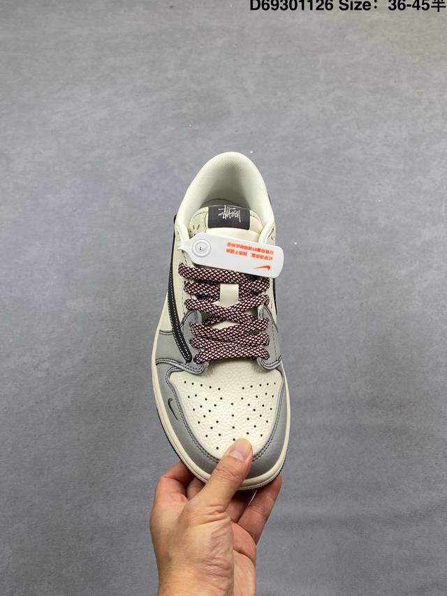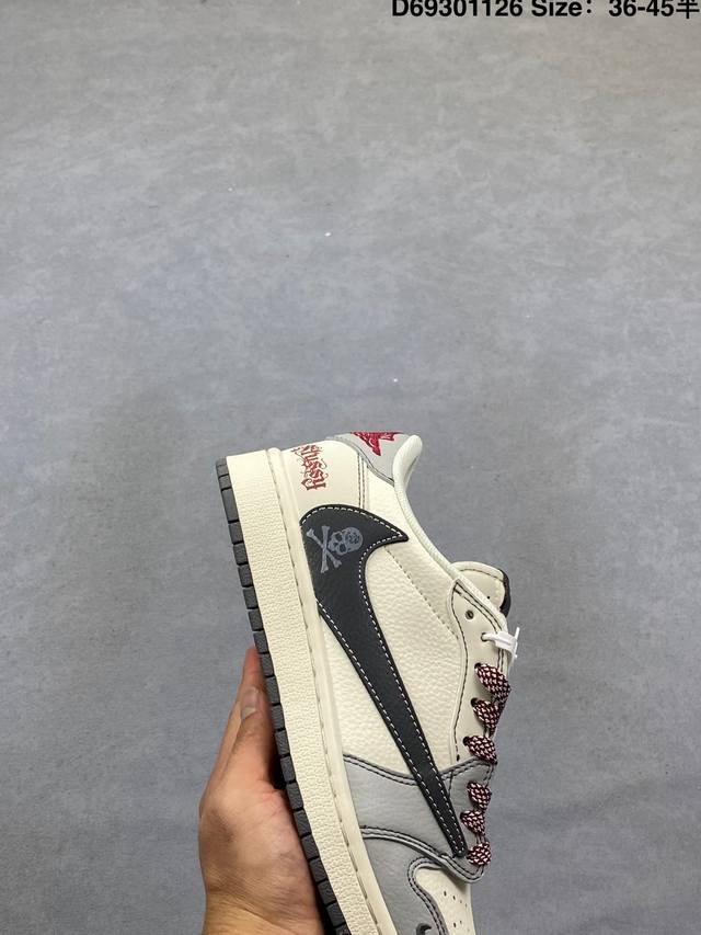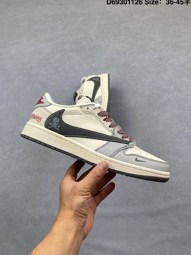 Fragment X Travis Scott X Stuart DDD Air Jordan 1 Low Three-Way Collaboration Reverse Swoosh DDD Value-for-Money Original Box Shipment The new three-way collaboration low-top reverse swoosh shoe continues the black toe design. The entire shoe is made of pebbled leather, with a white reverse swoosh on the waist, and embellished with Travis Scott's iconic logo. The heel features Hiroshi Fujiwara's signature blue as the main color, perfecting the white, blue and black design style of Fragment Design. The left and right shoes are decorated with Travis Scott's ghost face and Jordan Wings respectively, highlighting the luxurious style of the three-way collaboration. DDD Official Style Code: Xz3398 001 DDD Size: 36 36.5 37.5 38 38.5 39 40 40.5 41 42 42.5 43 44 44.5 45 D69301126 DDD