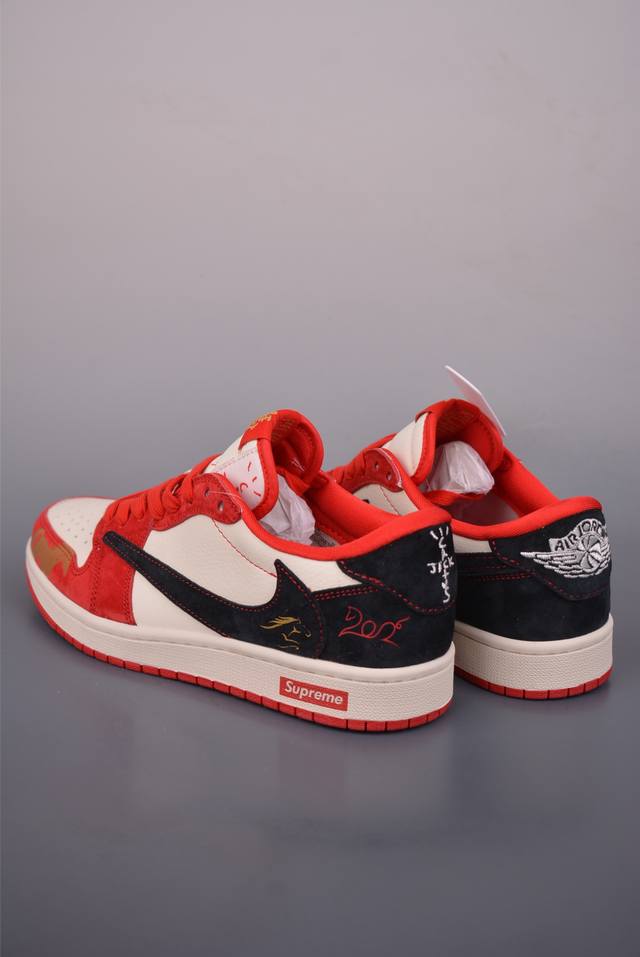 Fragment X Travis Scott X Year of the Horse Limited Edition Air Jordan 1 Low Three-Way Collaboration with Reverse Swoosh DDD This new three-way collaboration low-top Air Jordan 1 Low continues the Black Toe design, with the entire shoe crafted from pebbled leather. A white reverse Swoosh adorns the midfoot, complemented by Travis Scott's iconic logo. The heel features Hiroshi Fujiwara's signature blue, completing Fragment Design's signature white, blue, and black design style. The left and right shoes are decorated with Travis Scott's ghost face and Jordan Wings respectively, showcasing the luxurious style of this three-way collaboration. Official Style Code: Fc1688 2472529 Sizes: 36 36.5 37.5 38 38.5 39 40 40.5 41 42 42.5 43 44 44.5 45