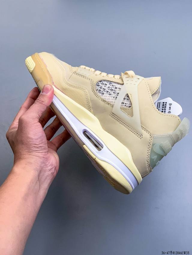 Genuine label! Air Jordan 4 AJ4 mid-top retro casual sports basketball shoes. Adhering to the design philosophy of lightweight speed basketball shoes, this shoe reduces weight while improving comfort. The midsole continues the use of a split, visible Air Sole unit in the heel. The lacing eyelets and heel pull tab are inspired by basketball nets, cleverly integrating basketball into the shoe's design, giving it a fluid, rhythmic, and elegant feel. DDD 0128461W35 DDD