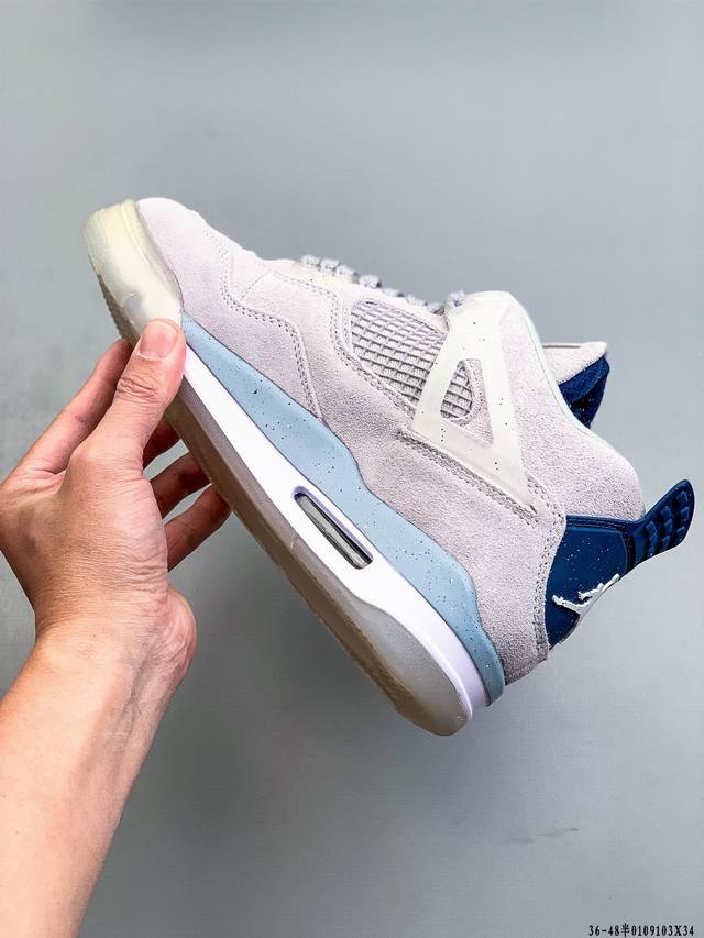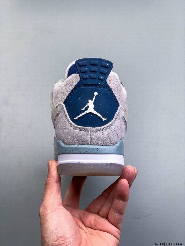 Genuine label! Air Jordan 4 AJ4 mid-top retro casual sports basketball shoes. Adhering to the design philosophy of lightweight speed basketball shoes, this shoe reduces weight while improving comfort. The midsole continues the use of a split, visible Air Sole unit in the heel. The lacing eyelets and heel pull tab are inspired by basketball nets, cleverly integrating basketball into the shoe's design, giving it a fluid, rhythmic, and elegant feel. DDD 0109103X34 DDD